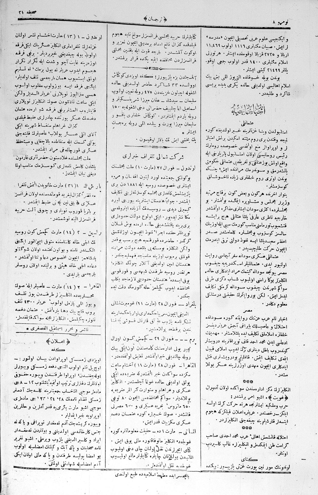 The name of the newspaper changed to Tercüman-ı Ahval-i Zaman in 1905. In 1909, it started to be published under its first name, Tercüman.