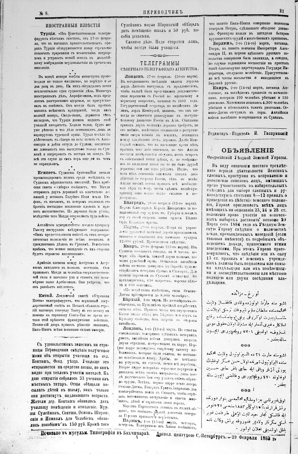 Turkish-Russian newspaper published in Crimea by İsmail Gaspıralı.