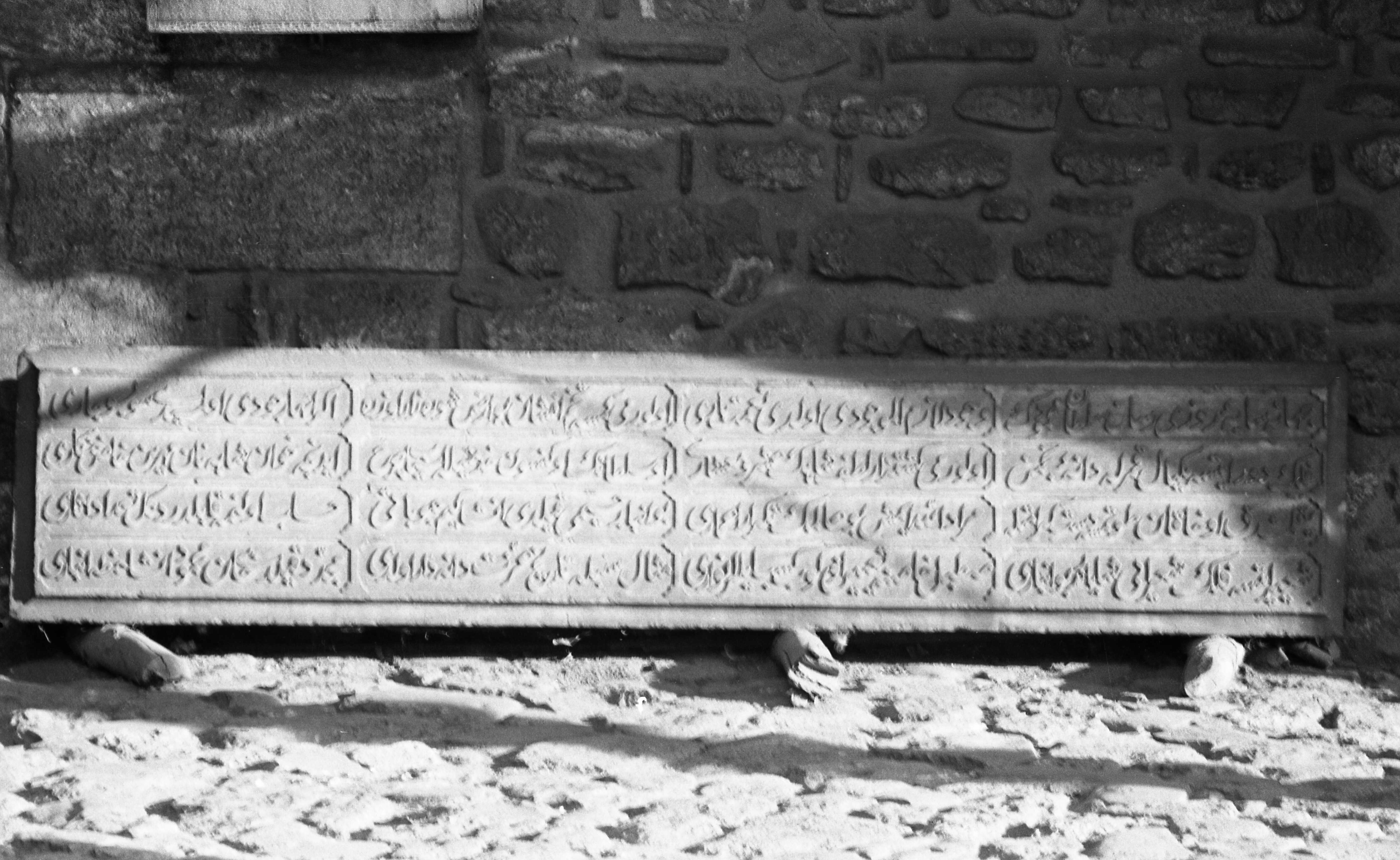 Topkapı Sarayı çini koleksiyonuna giden yolda revak altında bırakılmış taş kitabe