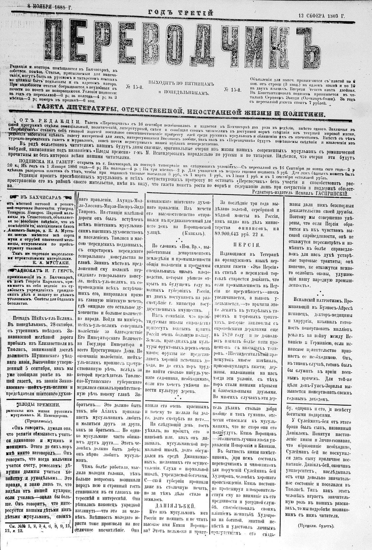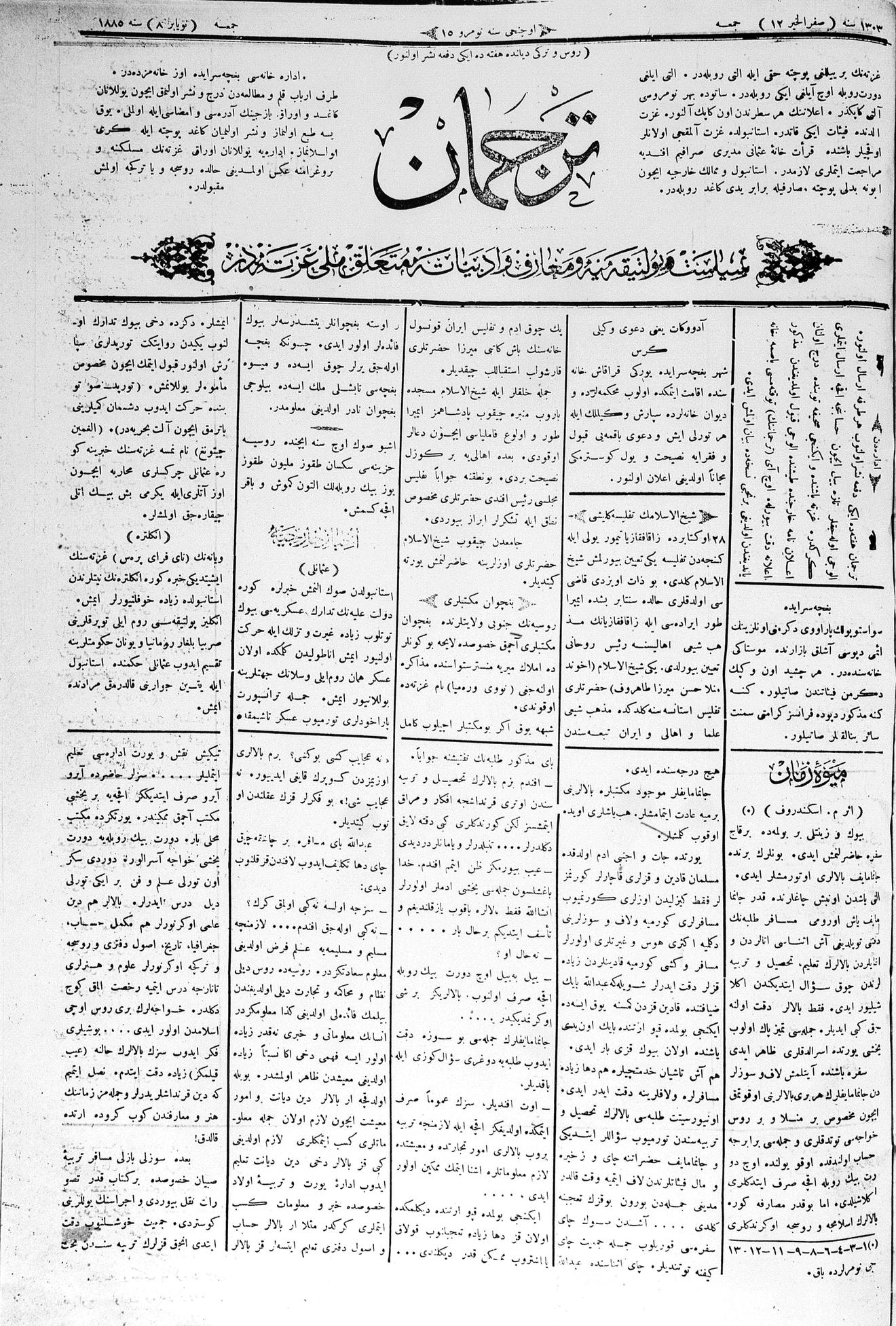 Tercüman, 08 November 1885 Year 3 No 15