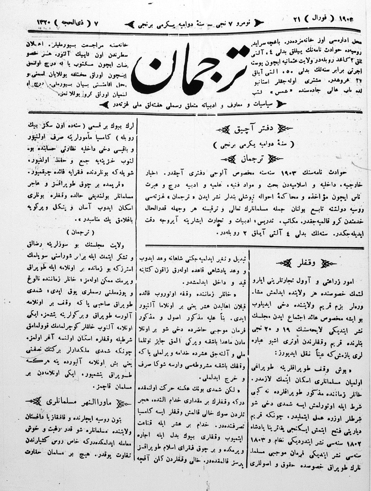 Turkish-Russian newspaper published in Crimea by İsmail Gaspıralı.