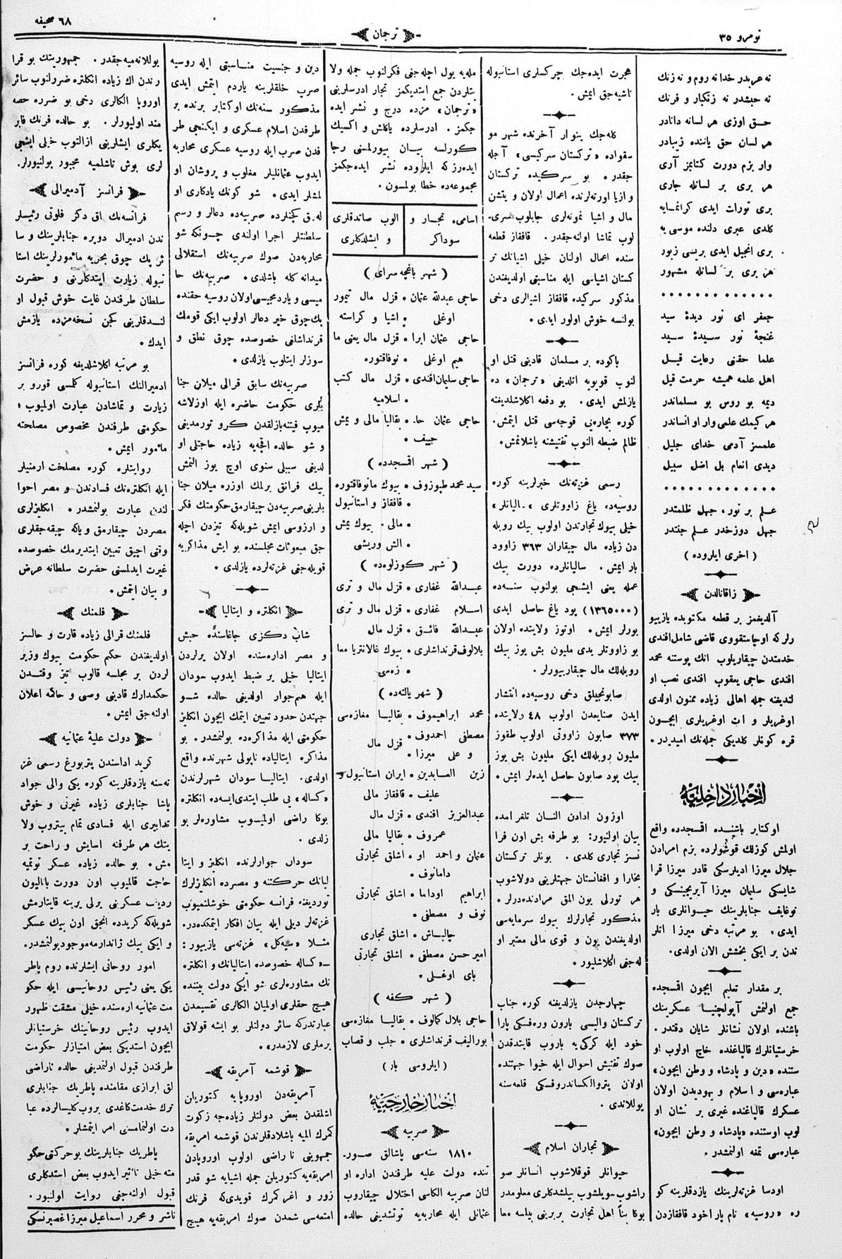 The name of the newspaper changed to Tercüman-ı Ahval-i Zaman in 1905. In 1909, it started to be published under its first name, Tercüman.