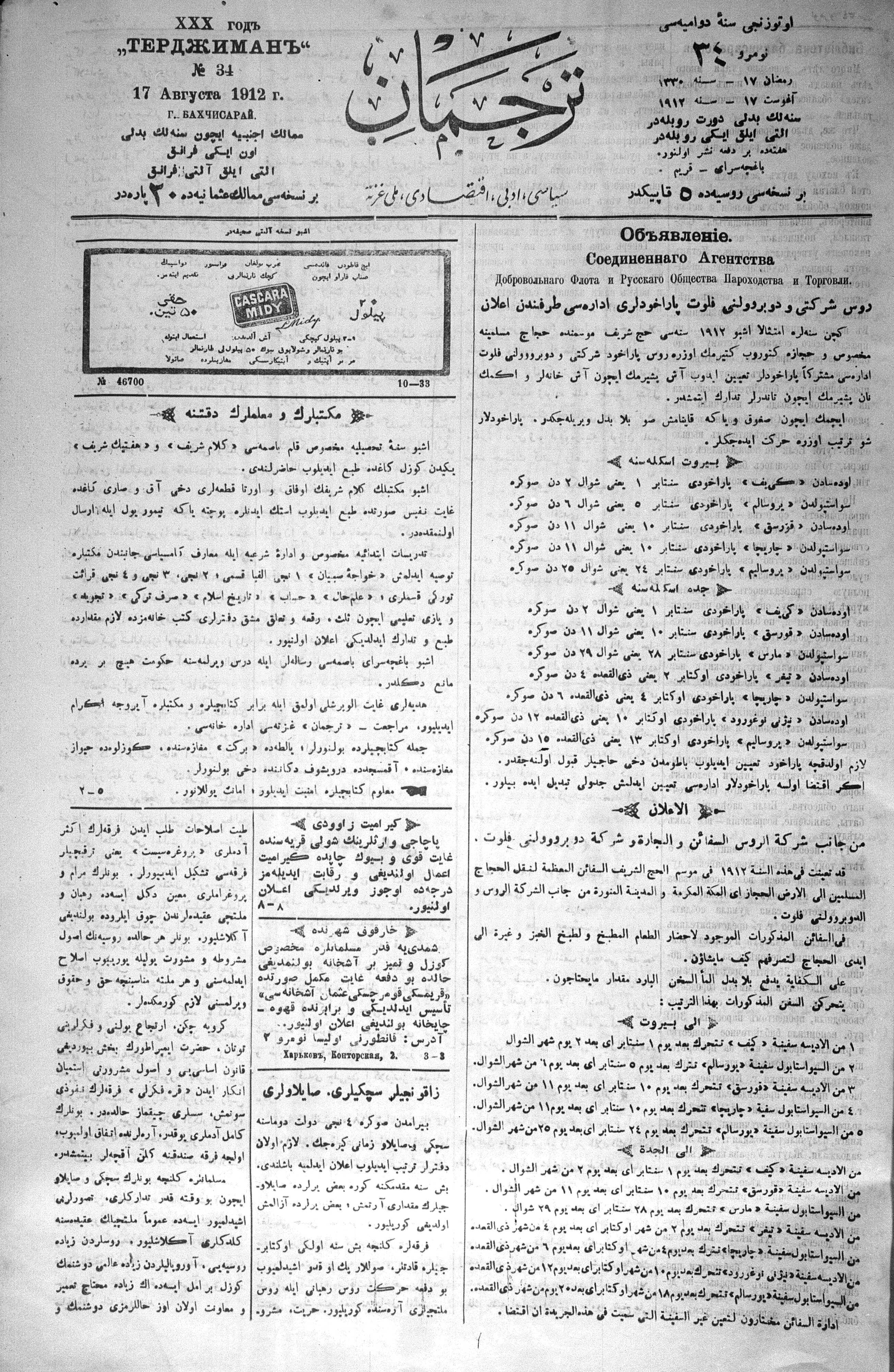Tercüman, 17 August 1912 Year 30 No 34
