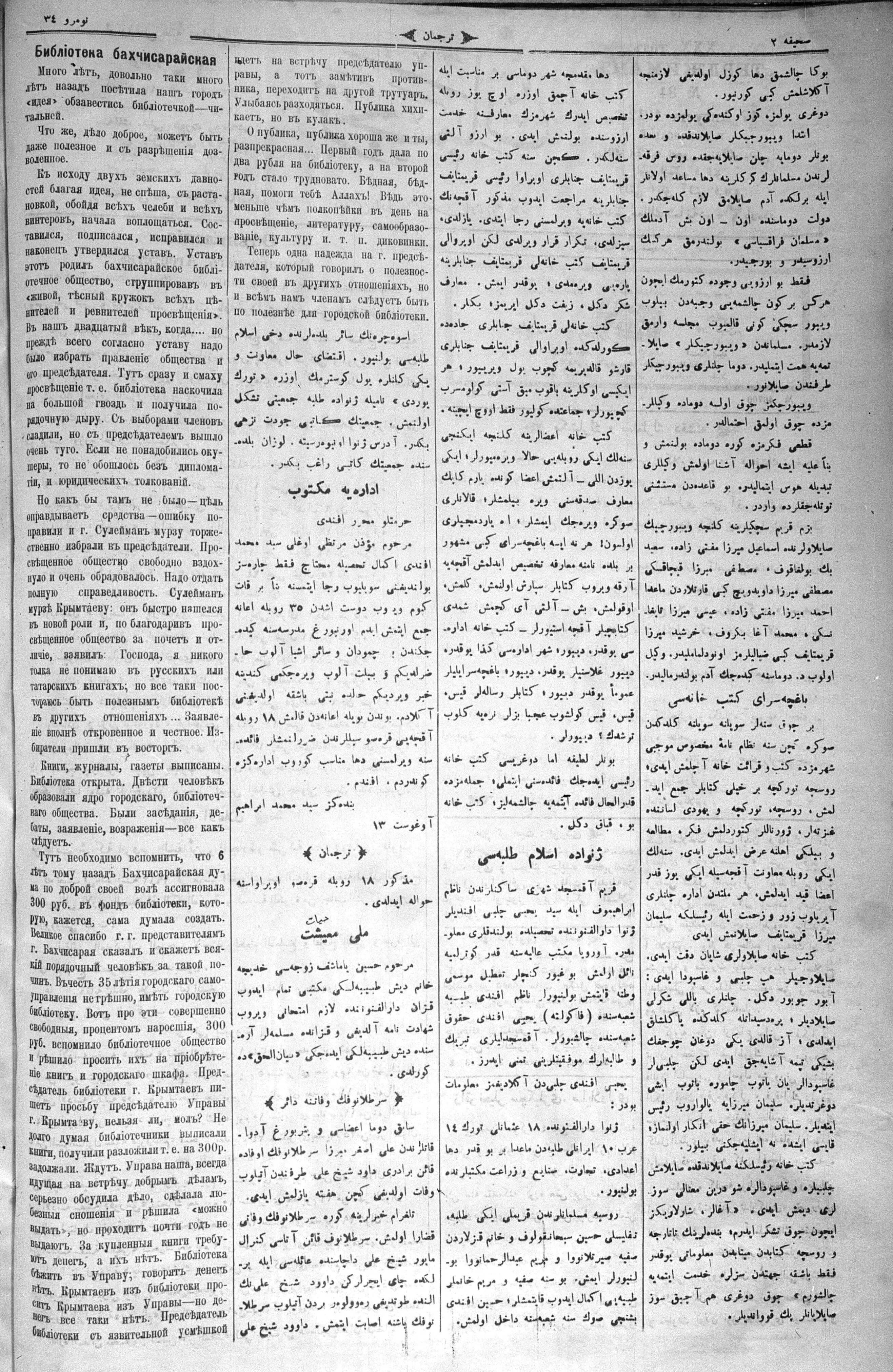 Turkish-Russian newspaper published in Crimea by İsmail Gaspıralı.
