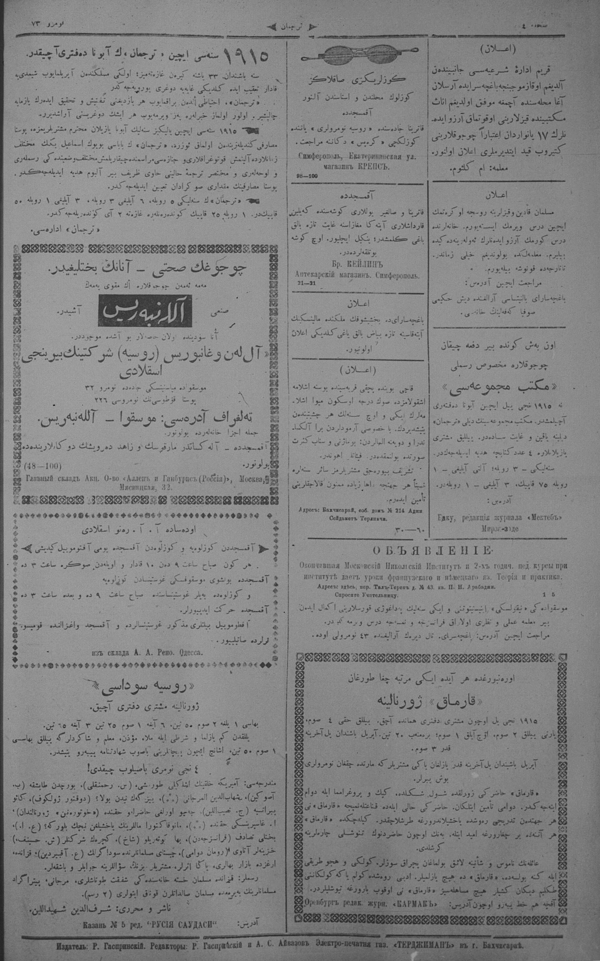 Turkish-Russian newspaper published in Crimea by İsmail Gaspıralı.