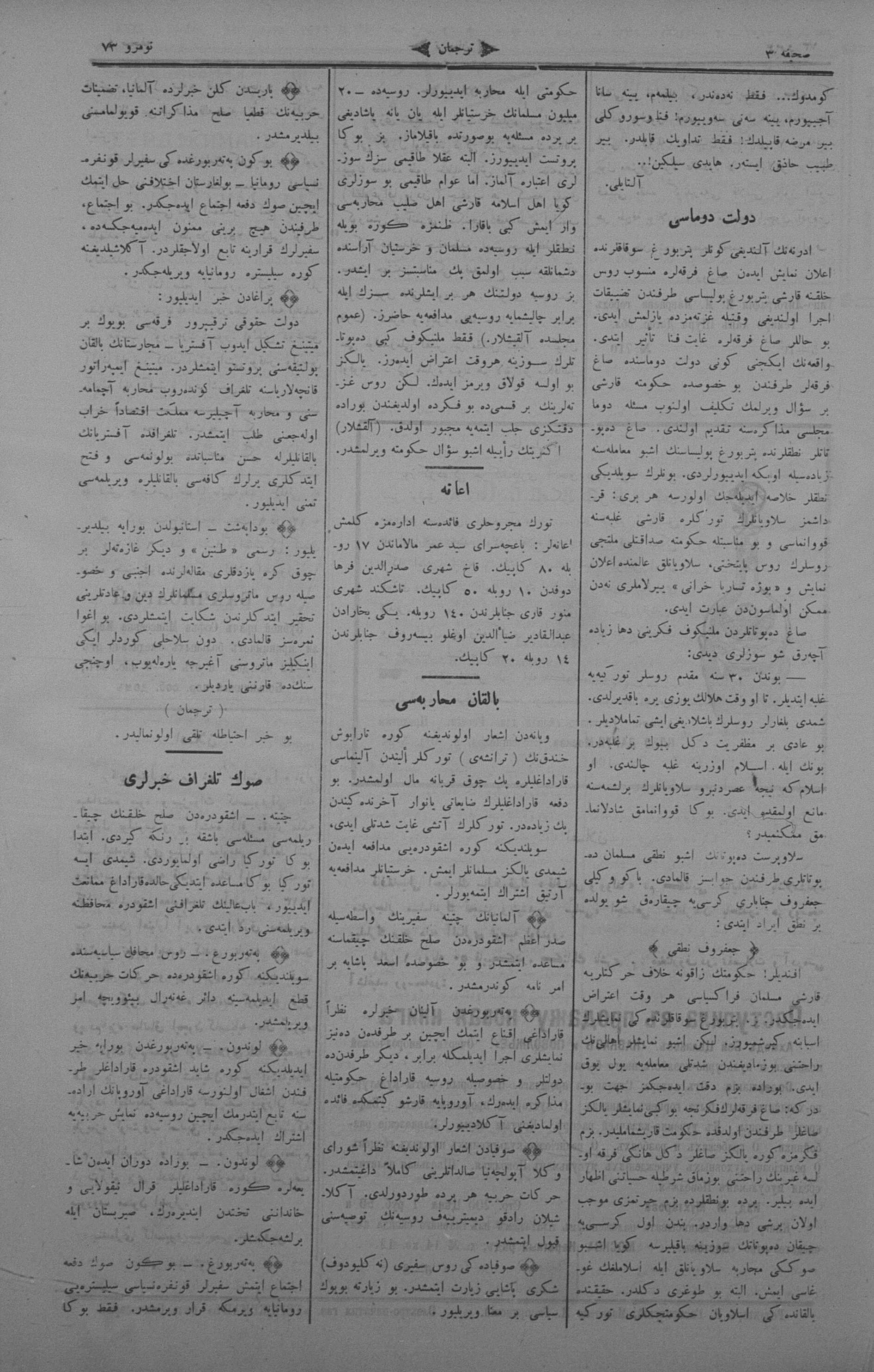 The name of the newspaper changed to Tercüman-ı Ahval-i Zaman in 1905. In 1909, it started to be published under its first name, Tercüman.