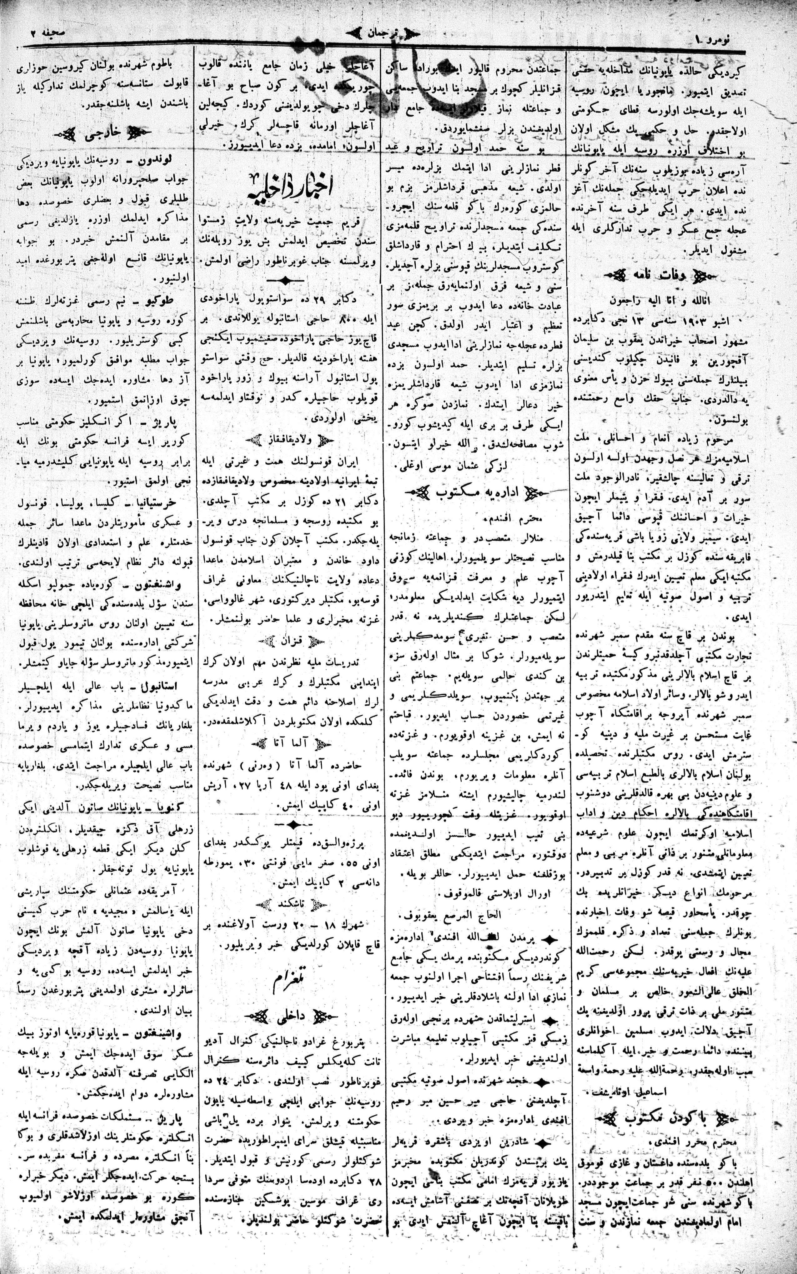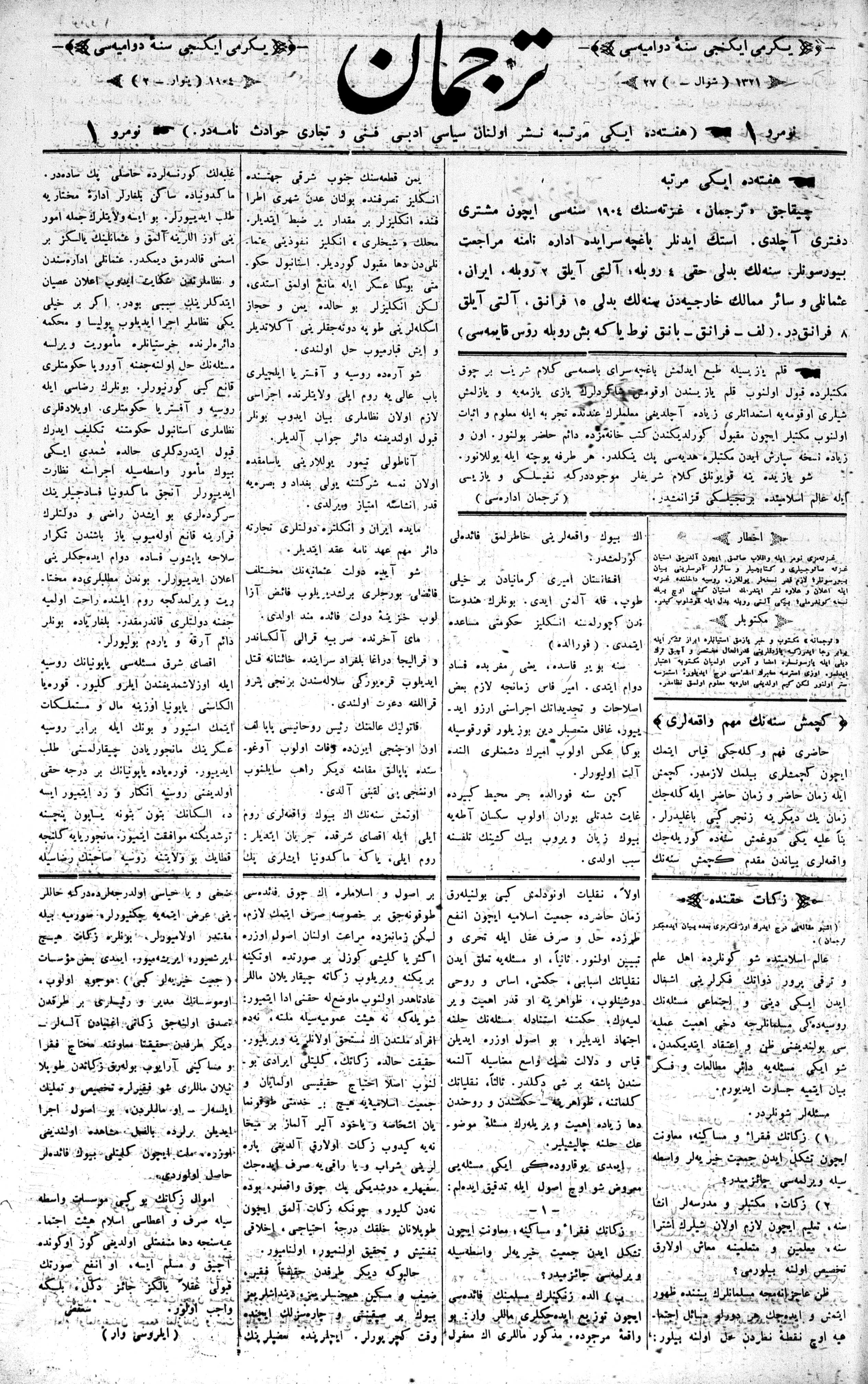 The name of the newspaper changed to Tercüman-ı Ahval-i Zaman in 1905. In 1909, it started to be published under its first name, Tercüman.