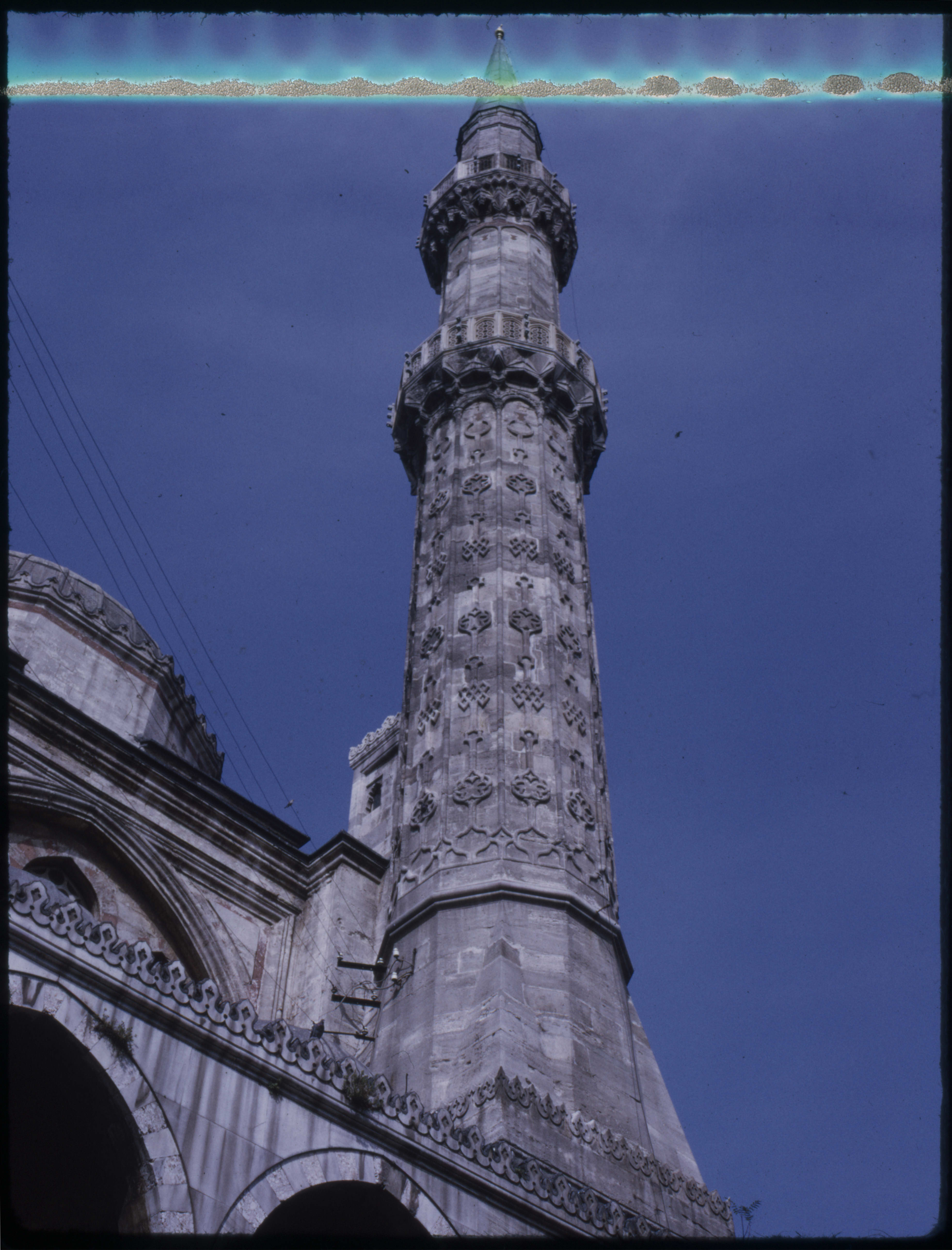 İstanbul-Ş ehzade Camii'nin minarelerinden birinin görünüşü