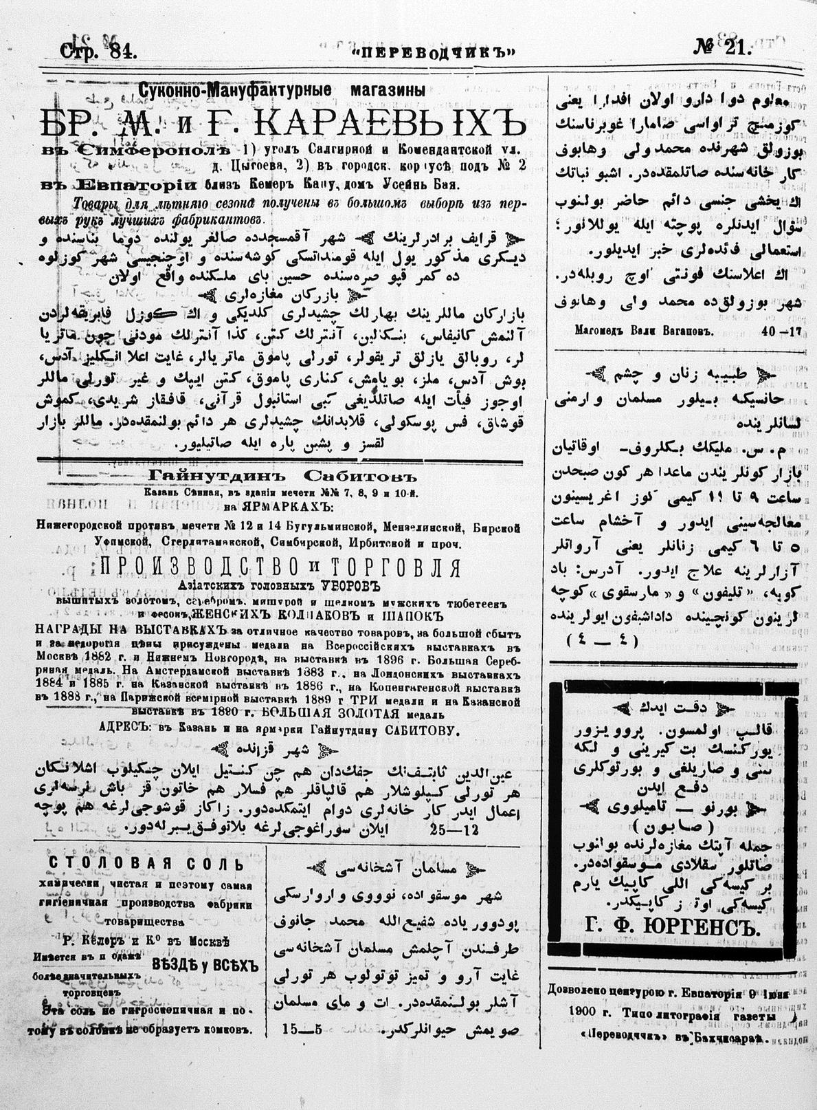 Tercüman, 12 June 1900 Year 18 No 21