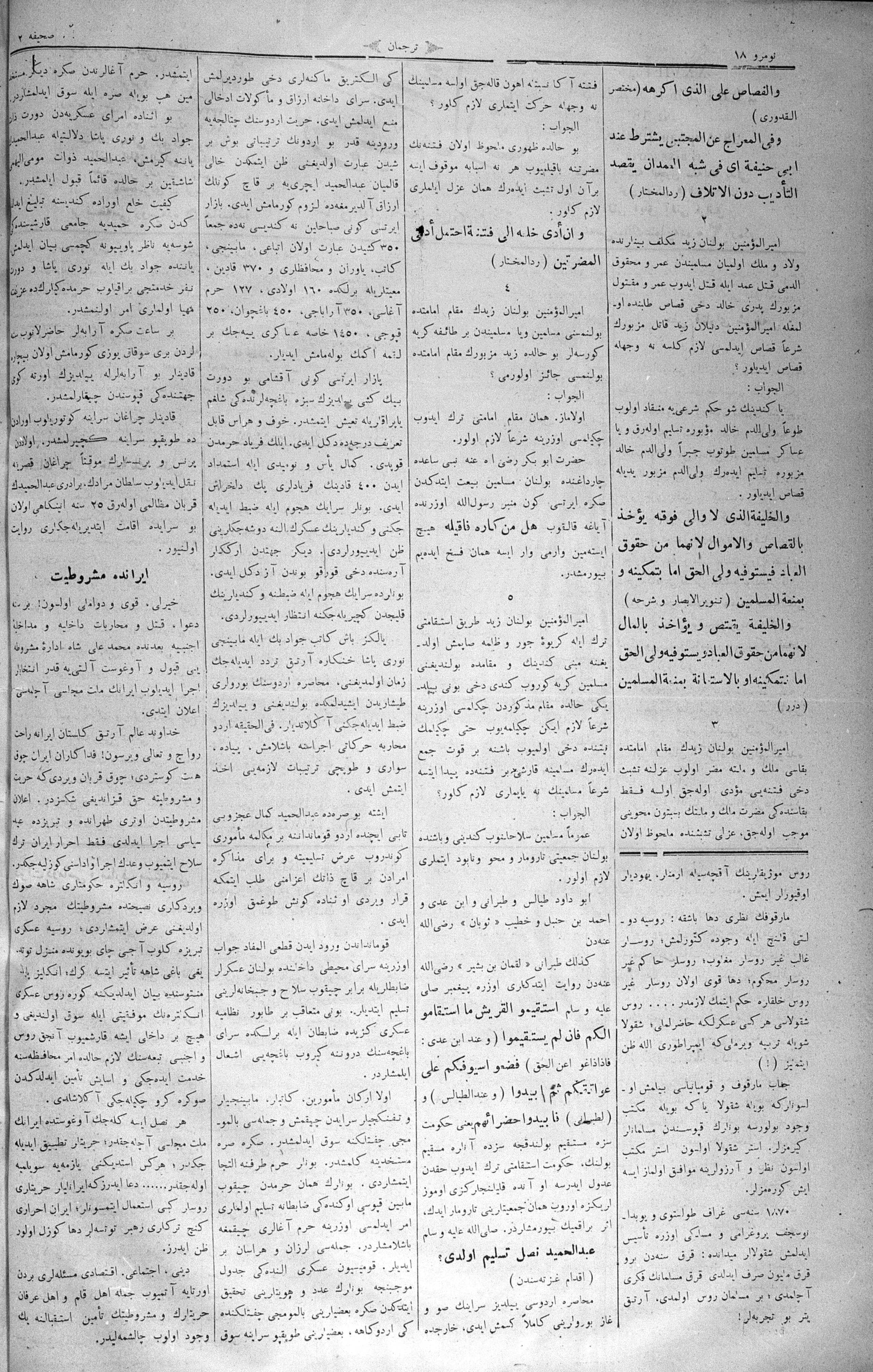 The name of the newspaper changed to Tercüman-ı Ahval-i Zaman in 1905. In 1909, it started to be published under its first name, Tercüman.