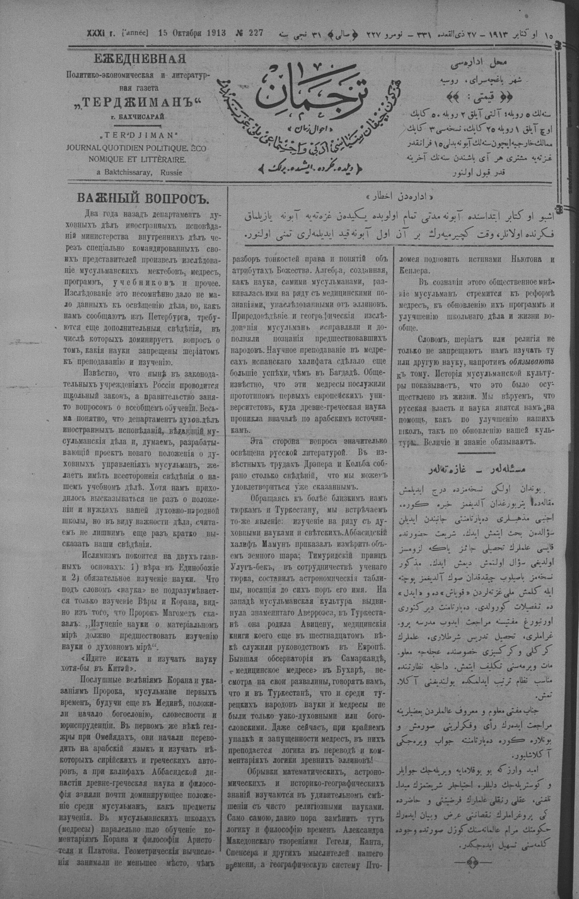 Tercüman, 15 October 1913 Year 31 No 227