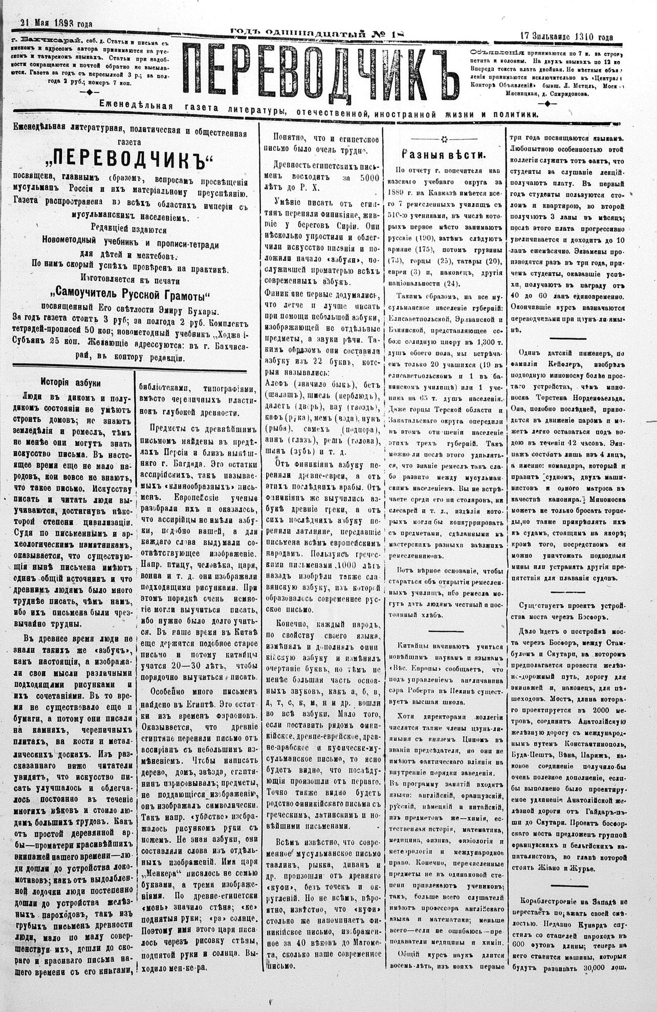Turkish-Russian newspaper published in Crimea by İsmail Gaspıralı.