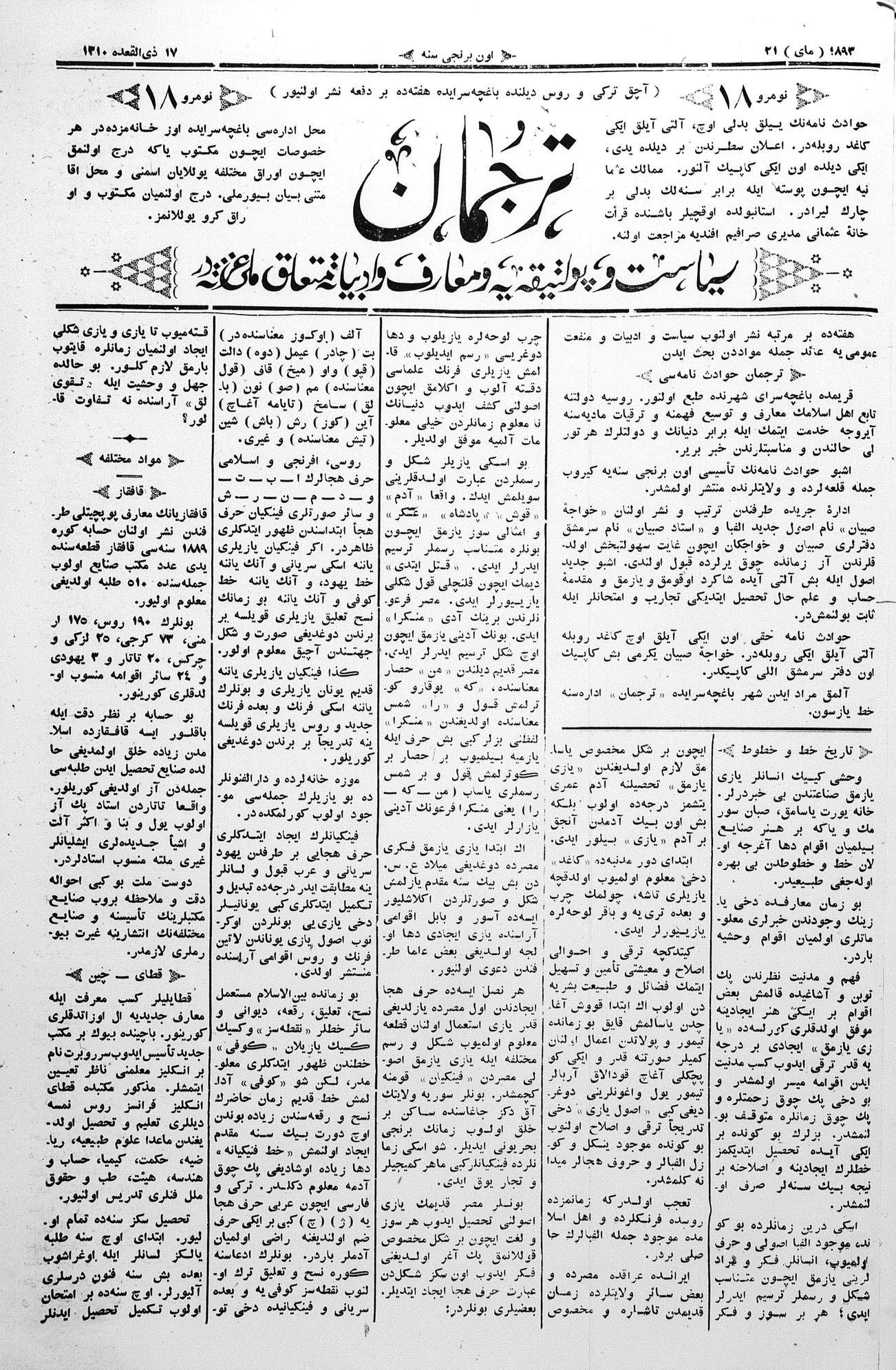 Tercüman, 21 May 1893 Year 11 No 18