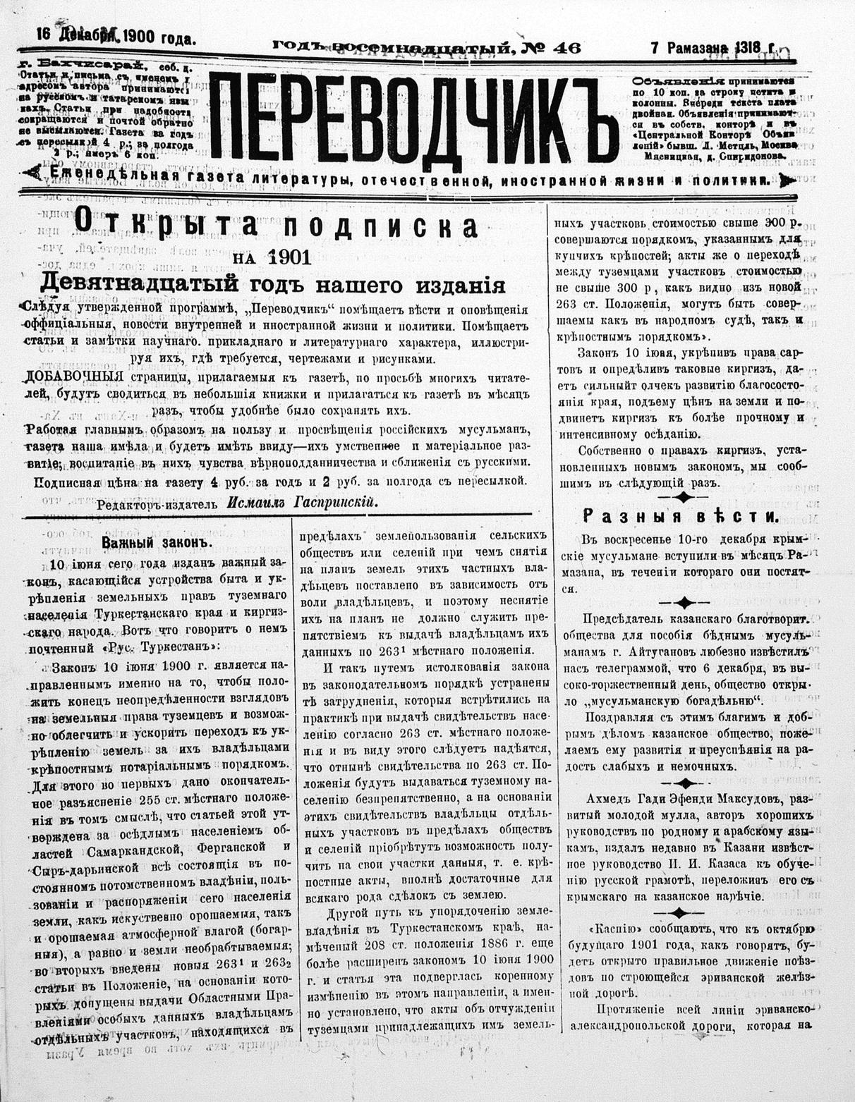 Turkish-Russian newspaper published in Crimea by İsmail Gaspıralı.