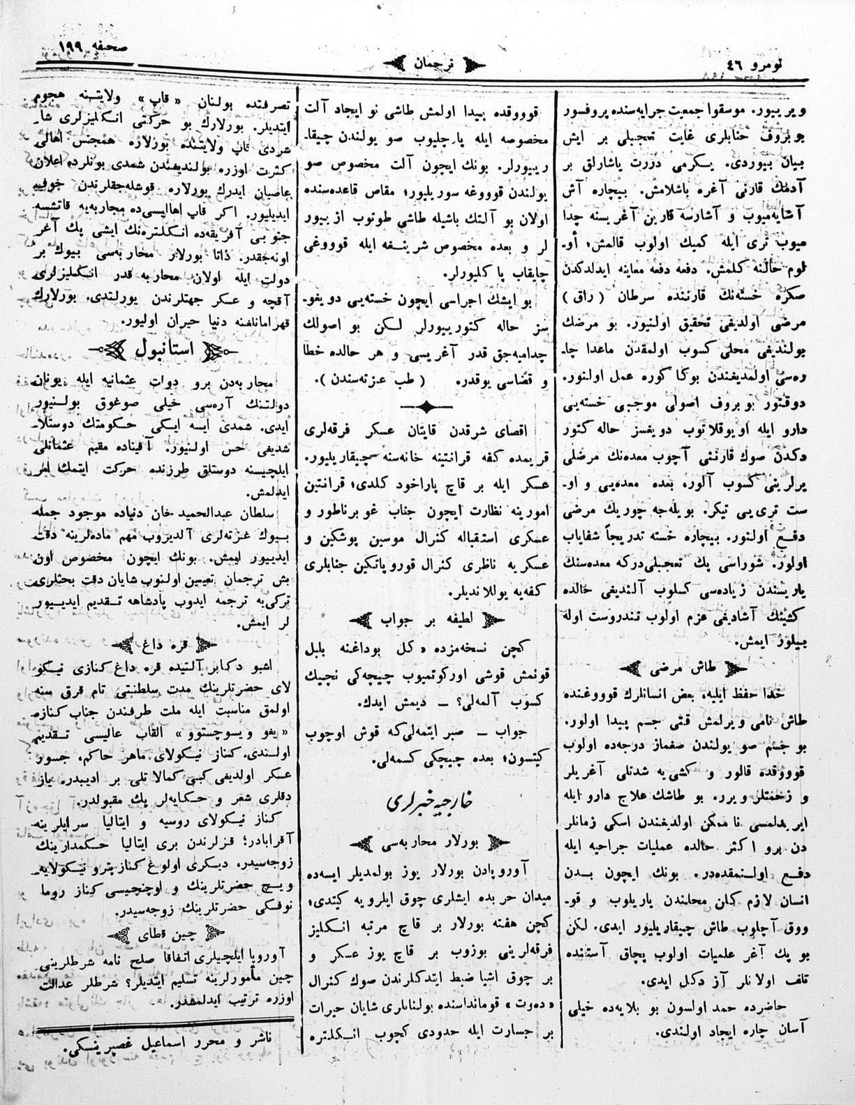 The name of the newspaper changed to Tercüman-ı Ahval-i Zaman in 1905. In 1909, it started to be published under its first name, Tercüman.