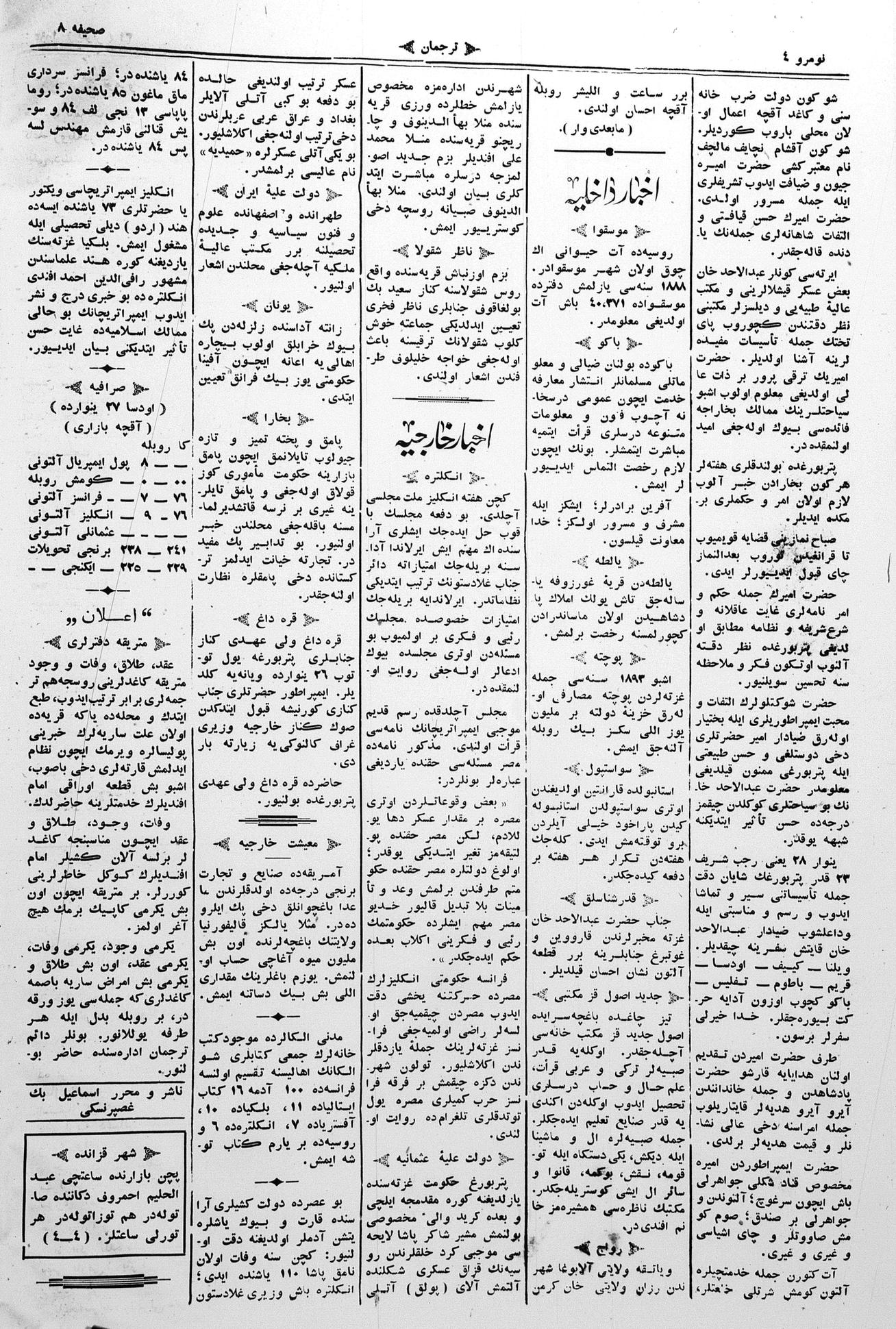 The name of the newspaper changed to Tercüman-ı Ahval-i Zaman in 1905. In 1909, it started to be published under its first name, Tercüman.