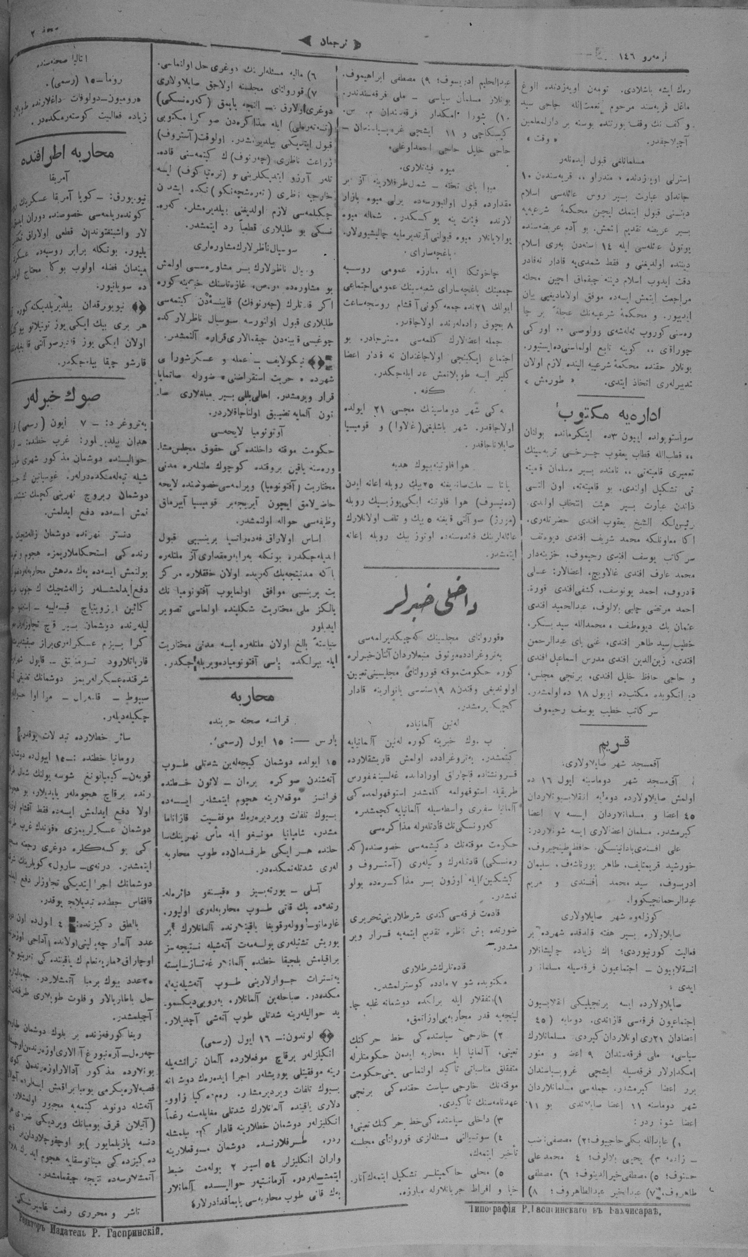 Turkish-Russian newspaper published in Crimea by İsmail Gaspıralı.