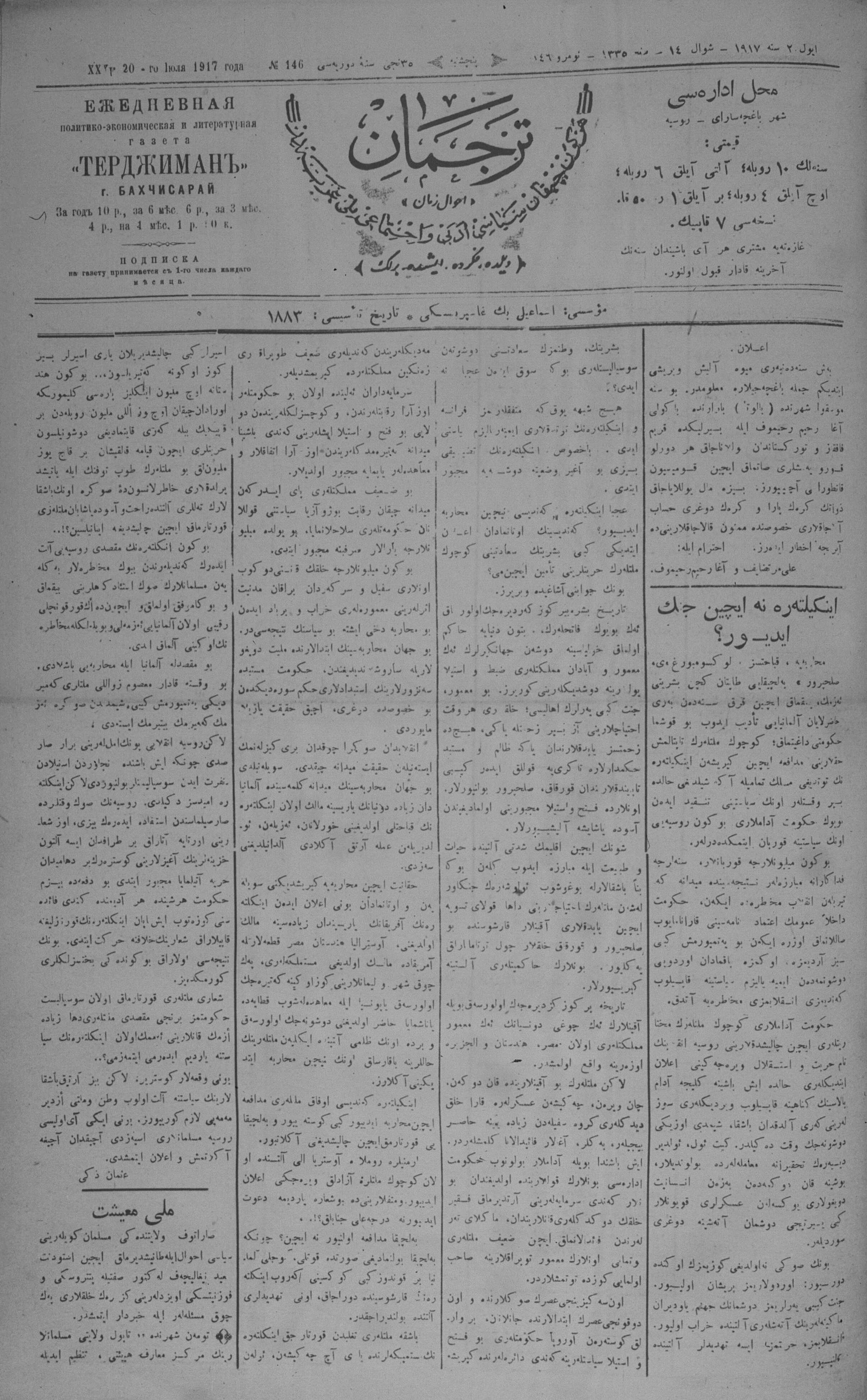 Tercüman, 20 July 1917 Year 35 No 146