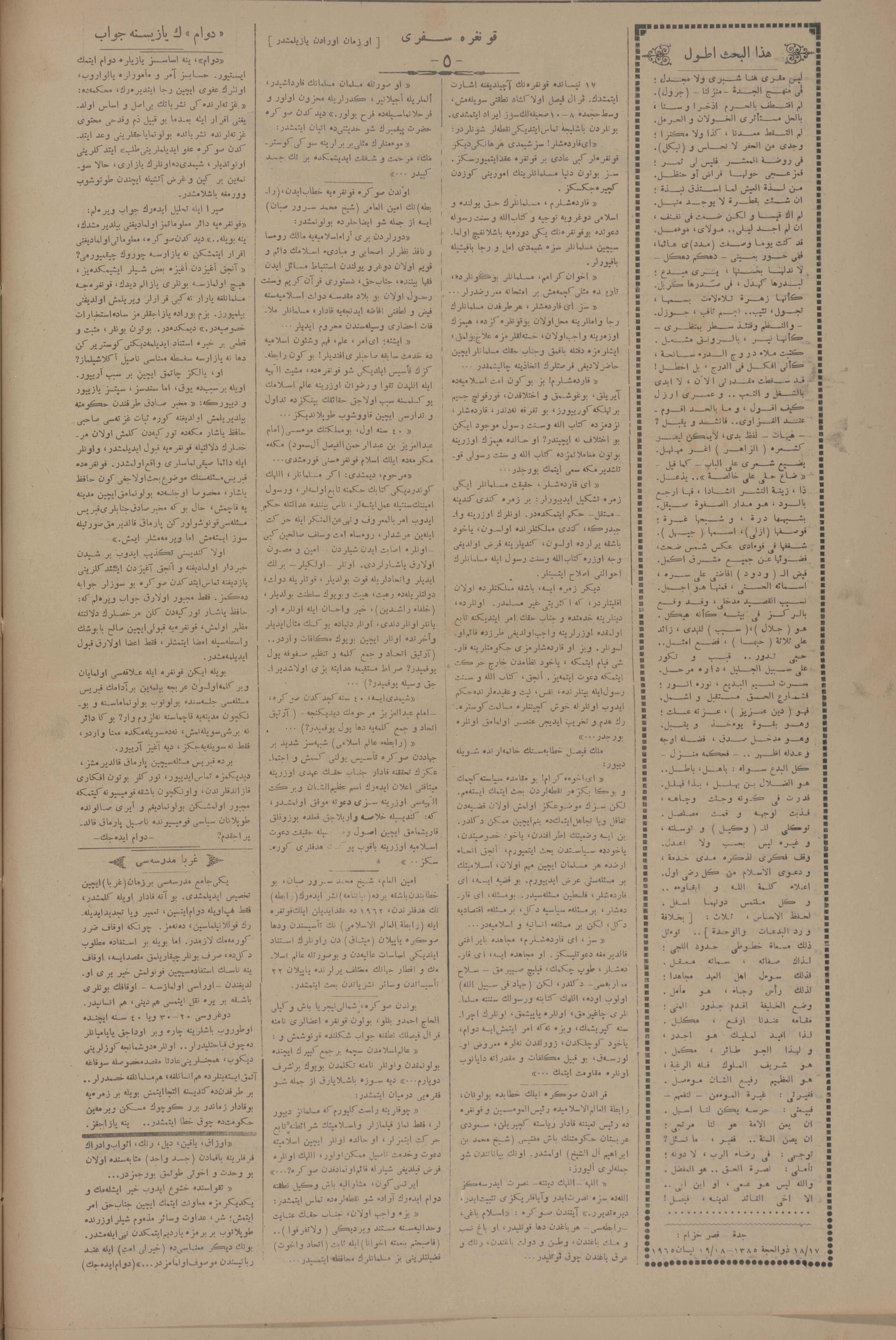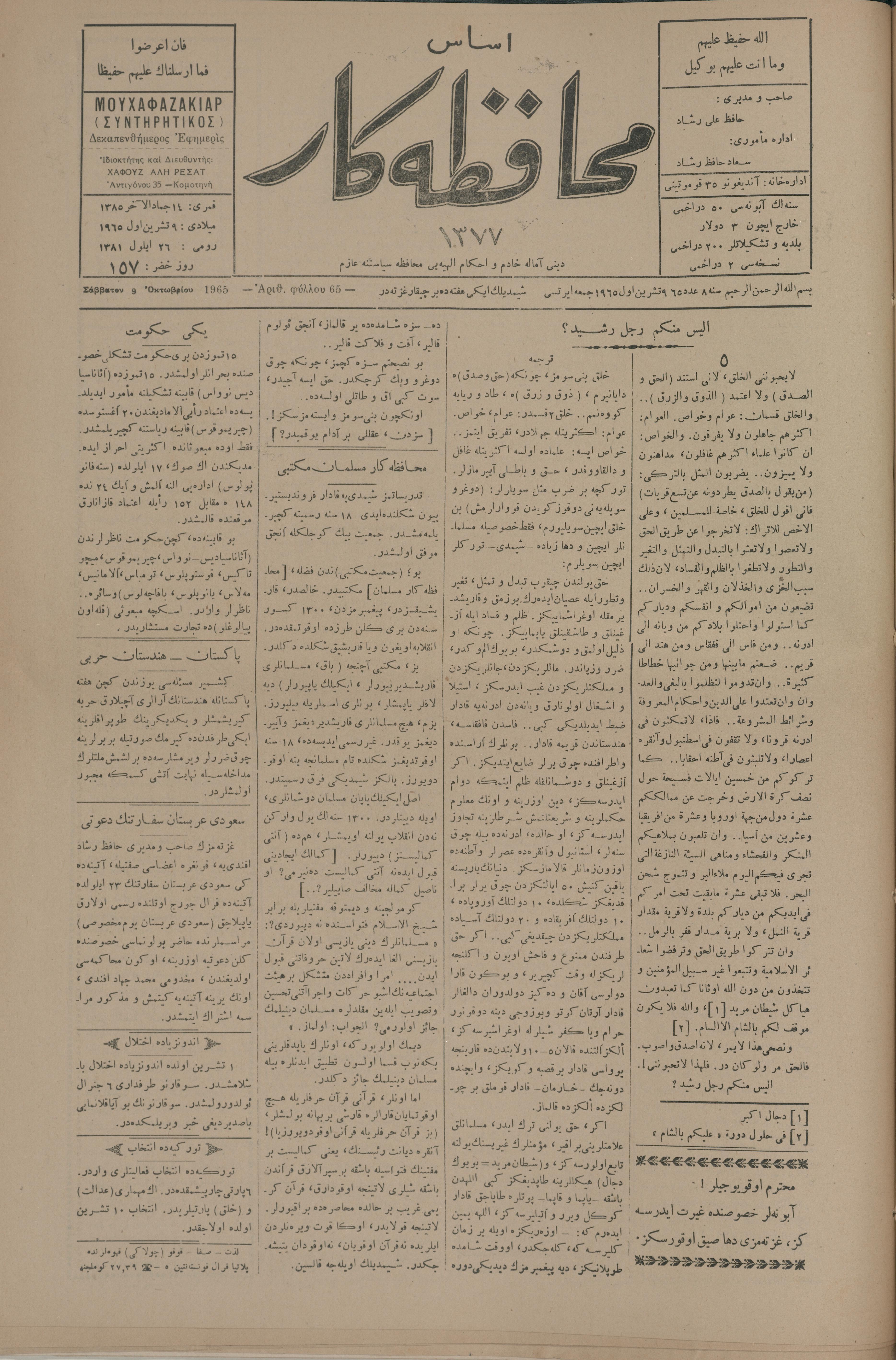 Esas muhafazakâr 1377, 9 Ekim 1965 Sene 8 Aded 65