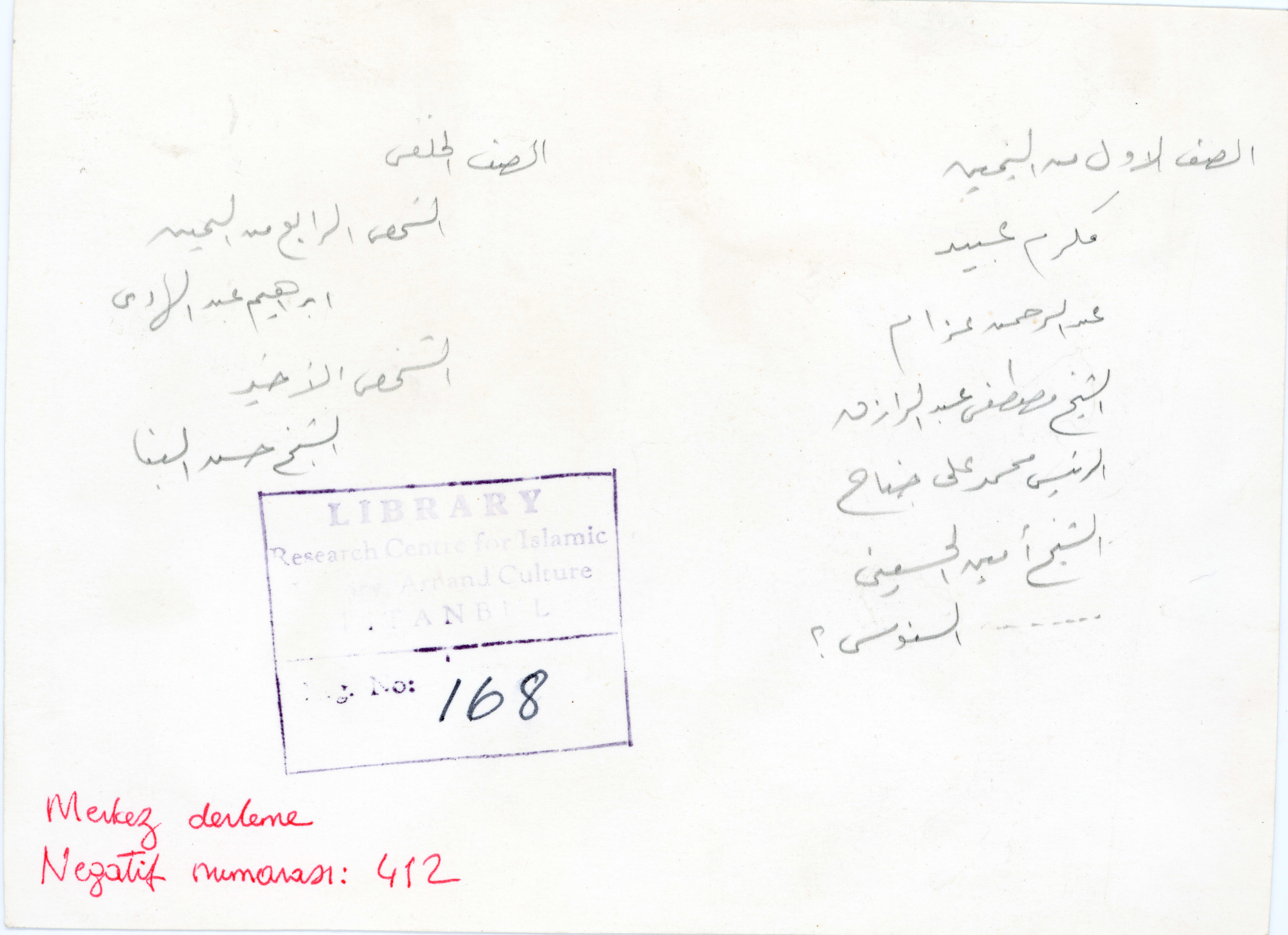 الصف الأول من اليمين: مکرم عبید, عبد الرحمن عزام, الشيخ مصطفى عبد الرازق, الرئيس محمد علی جناح, الشيخ أمين الحسيني, السنوسي ؟ الصف الخلفي: الشخص الرابع من الحين برهيم عبد الهادي, لشخص الأخيرالشيخ حسن البنا