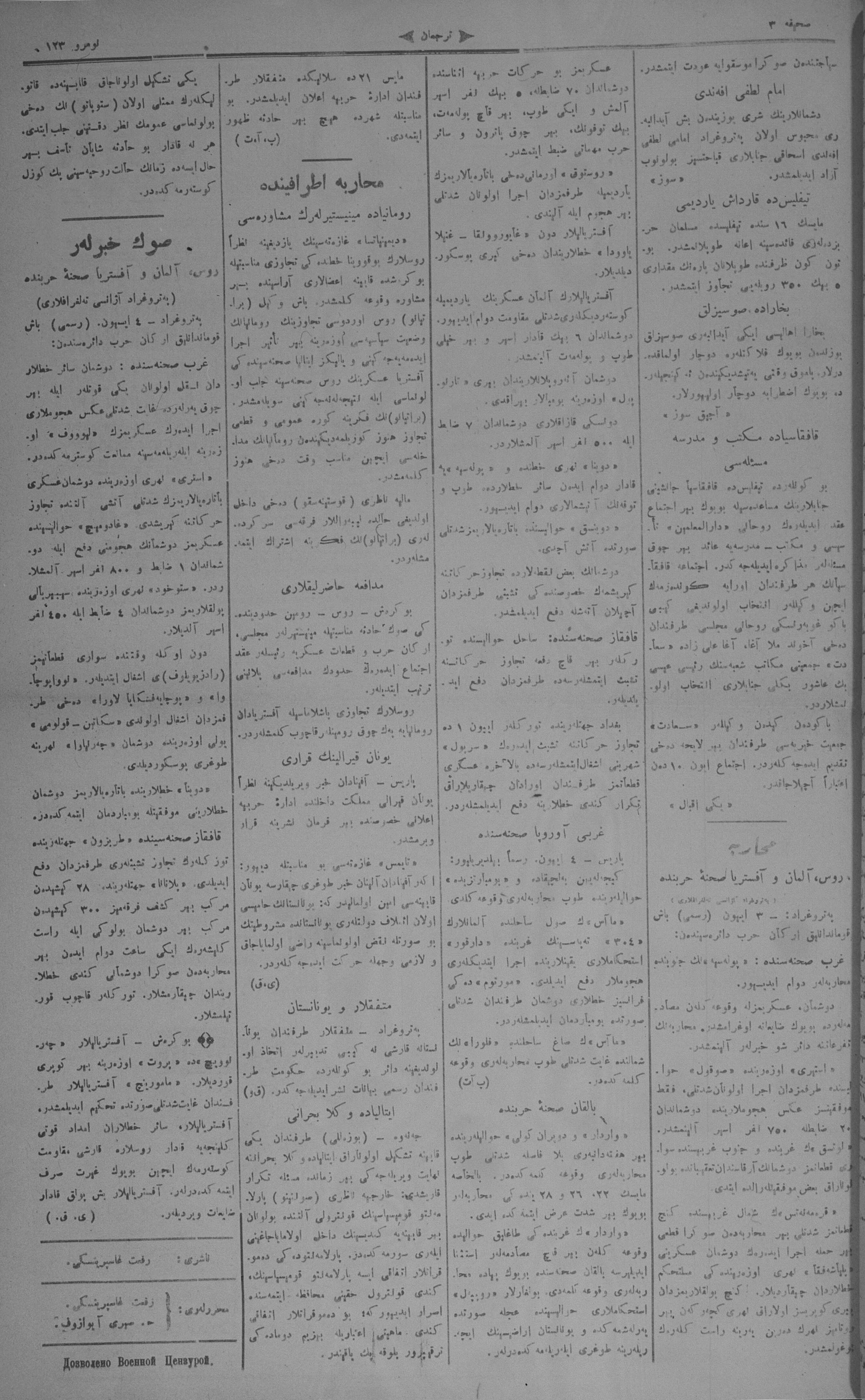 The name of the newspaper changed to Tercüman-ı Ahval-i Zaman in 1905. In 1909, it started to be published under its first name, Tercüman.