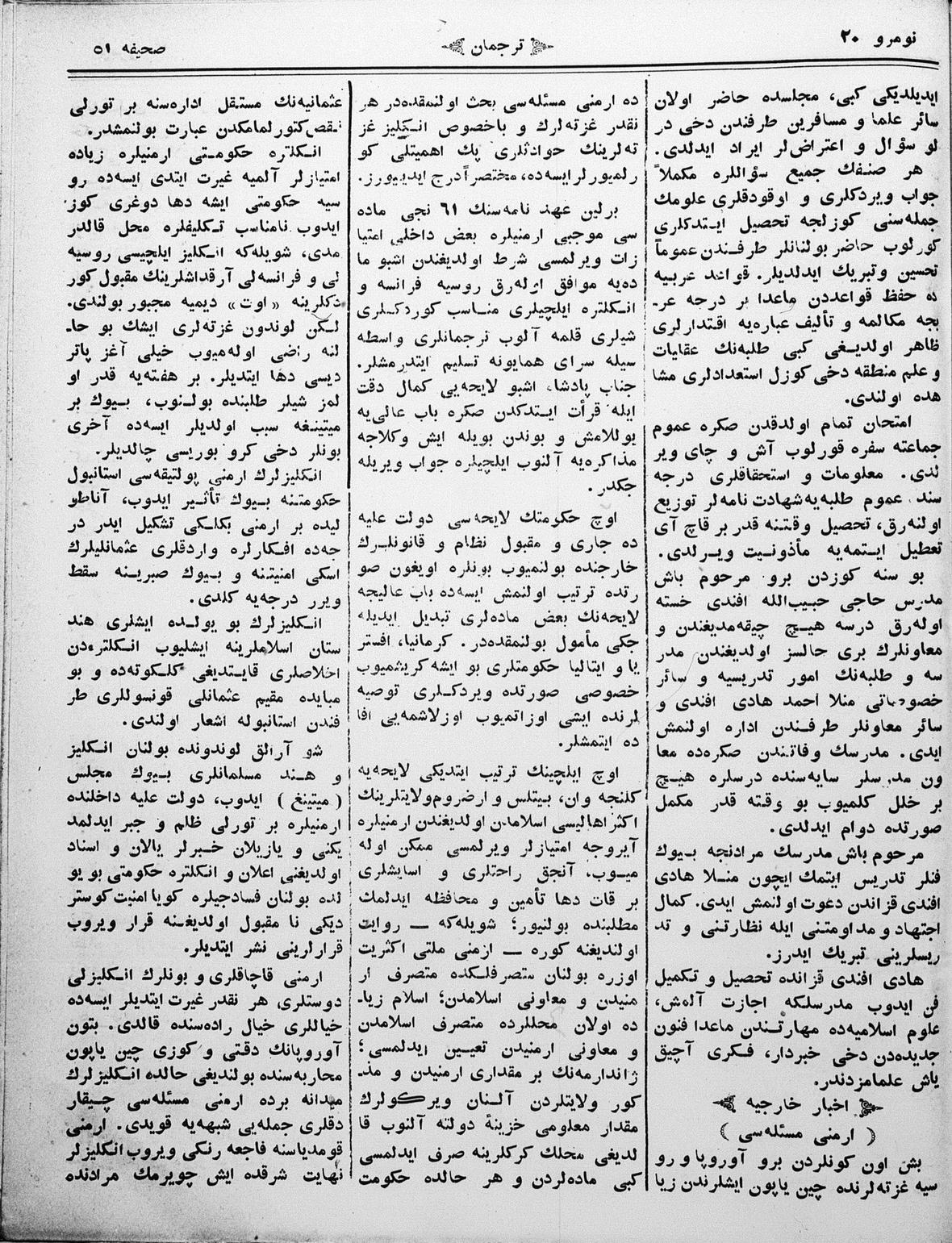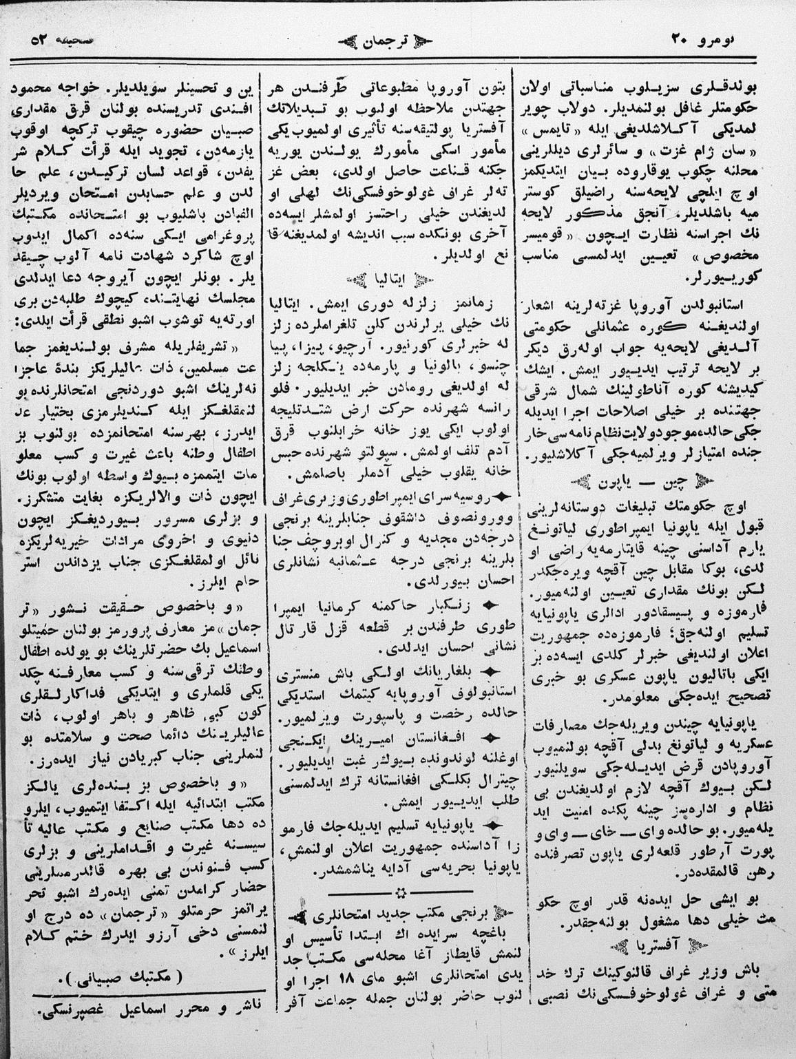 The name of the newspaper changed to Tercüman-ı Ahval-i Zaman in 1905. In 1909, it started to be published under its first name, Tercüman.