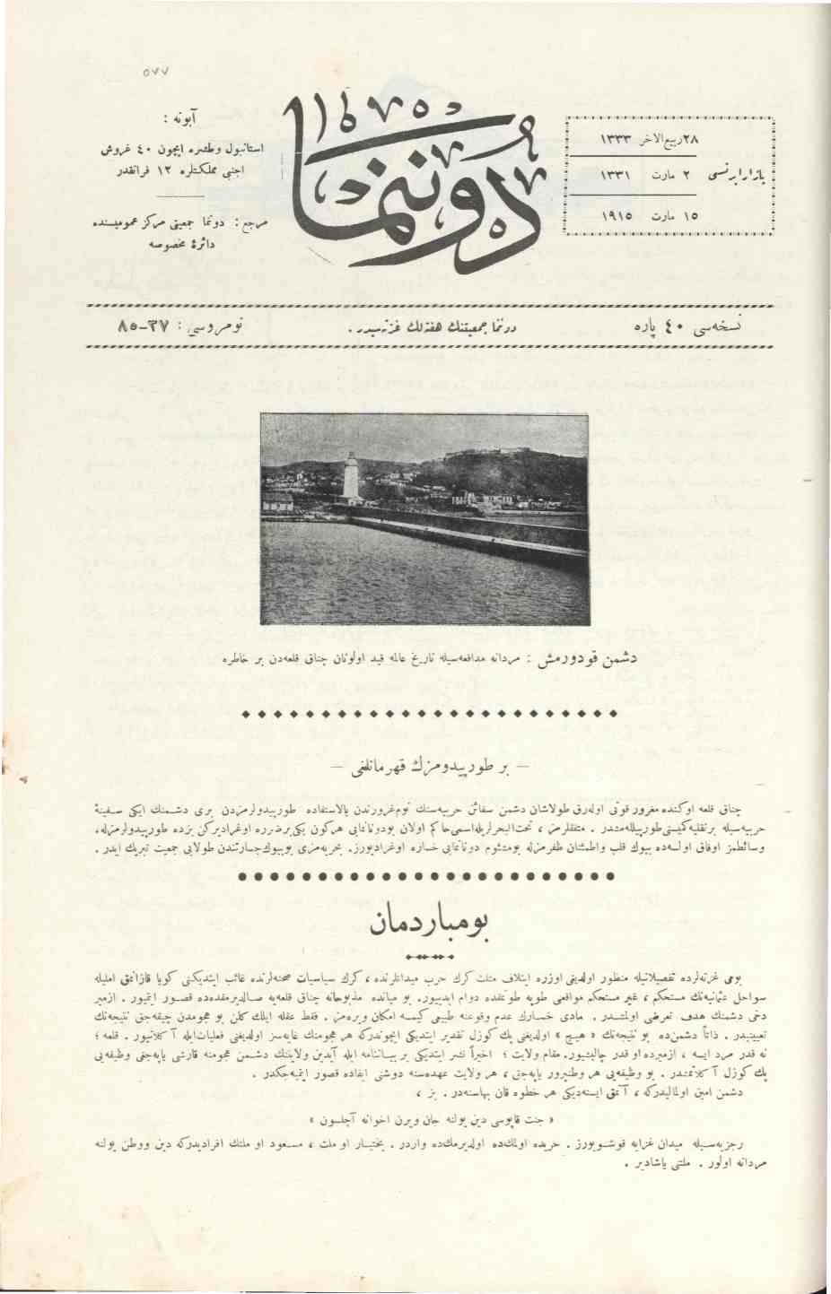 The name of the periodical was published under the following titles in different periods: Donanma: Donanma Cemiyetinin haftalık gazetesi; Donanma: istikbal denizlerdedir; Donanma: şimdilik ayda bir defa neşrolunur; Donanma: ayda bir defa neşr olunur, musavver, ahlaki, edebi, tarihi, fenni mecmuadır.
