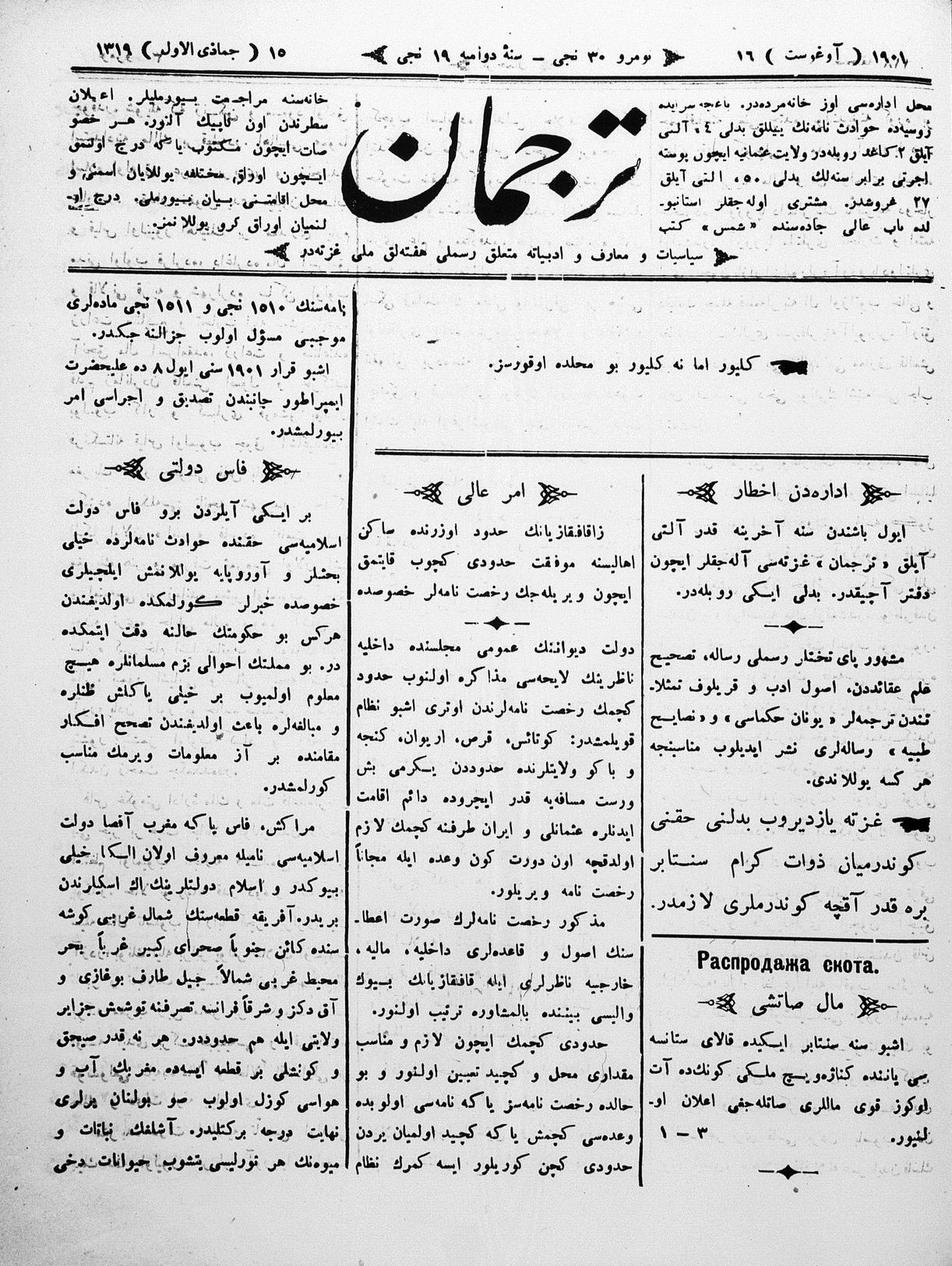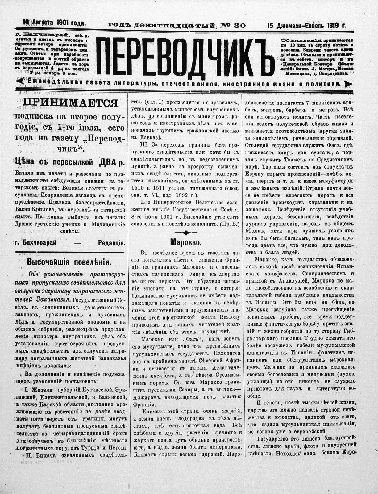 Turkish-Russian newspaper published in Crimea by İsmail Gaspıralı.