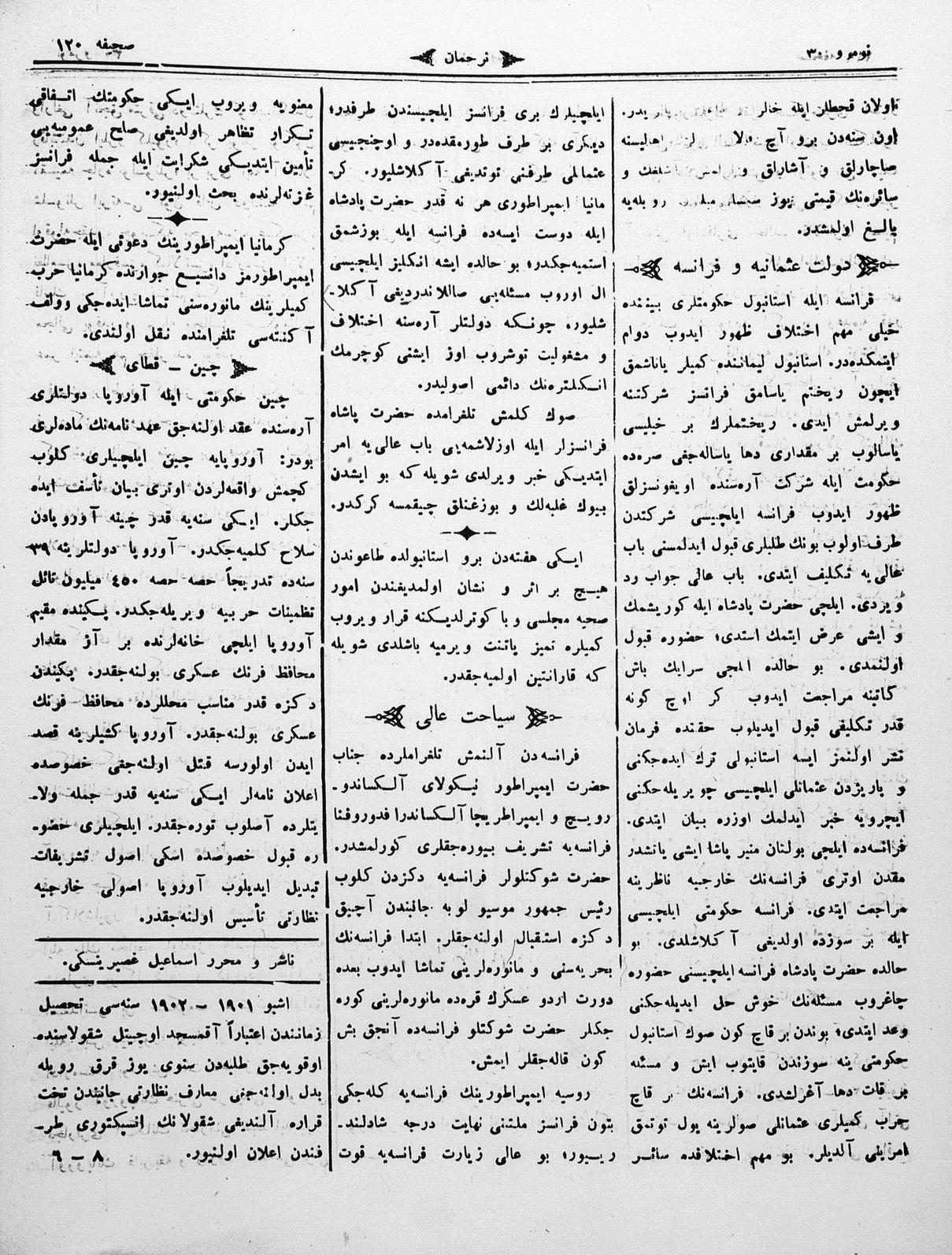 The name of the newspaper changed to Tercüman-ı Ahval-i Zaman in 1905. In 1909, it started to be published under its first name, Tercüman.
