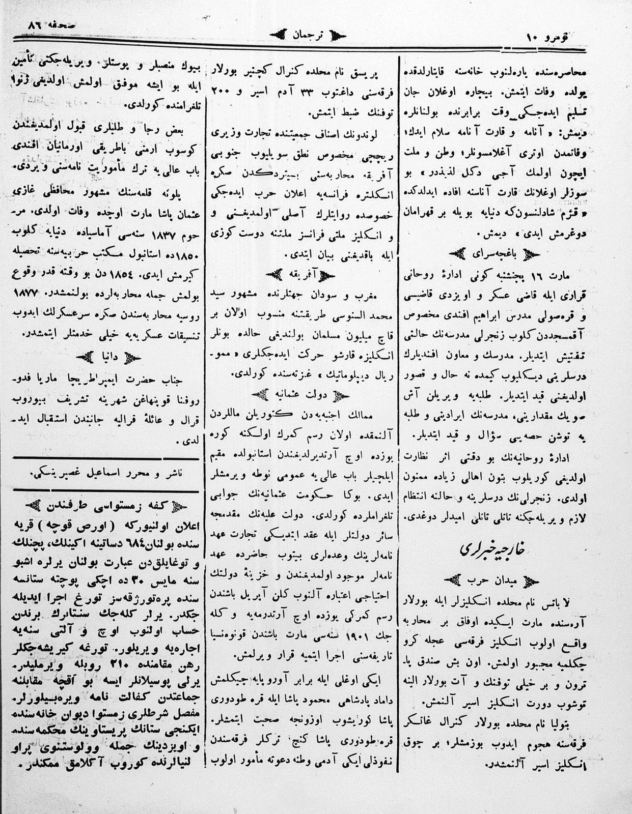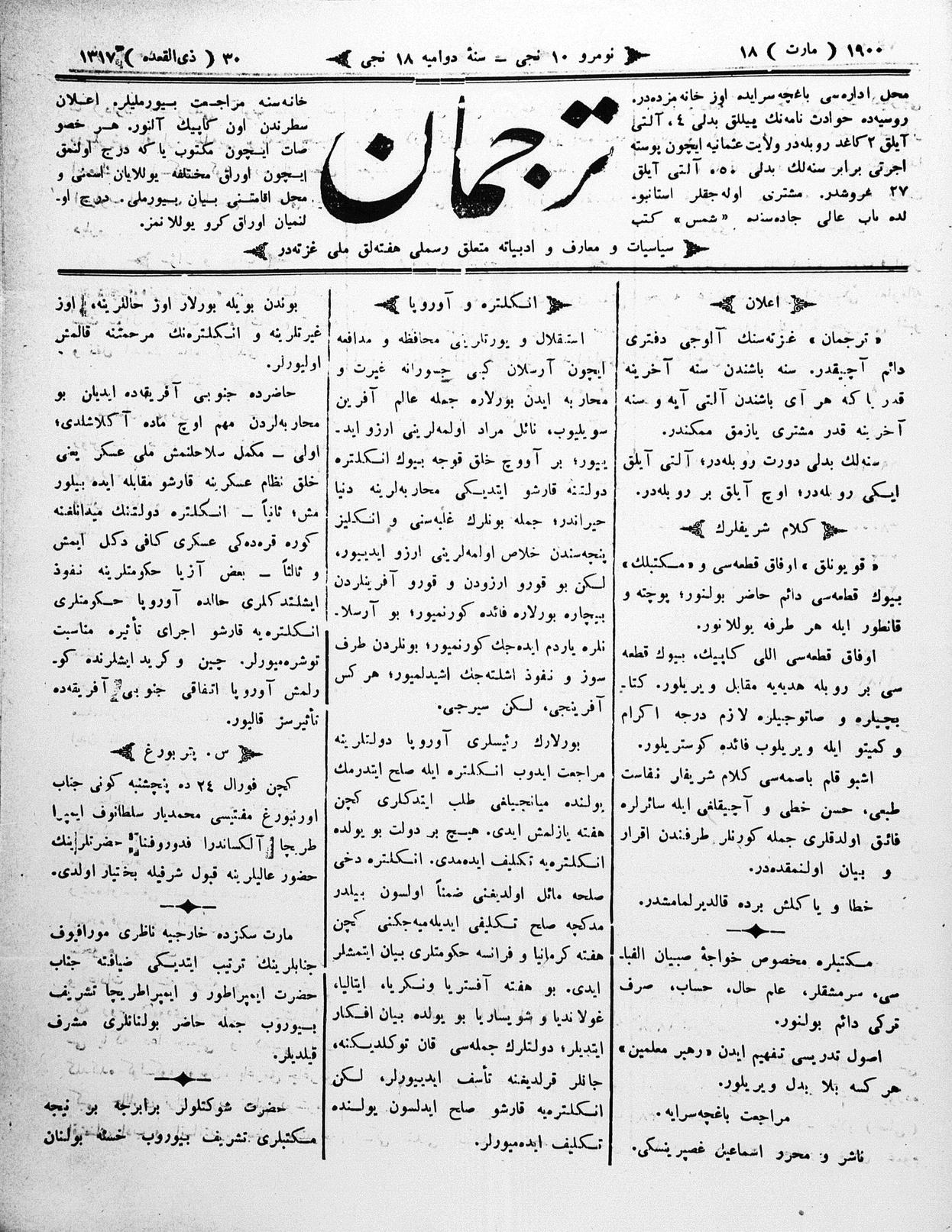 The name of the newspaper changed to Tercüman-ı Ahval-i Zaman in 1905. In 1909, it started to be published under its first name, Tercüman.