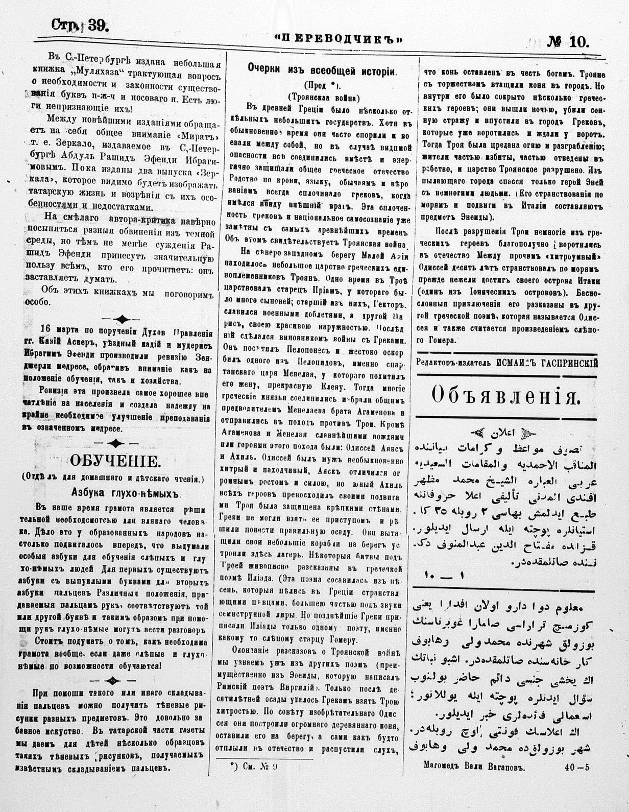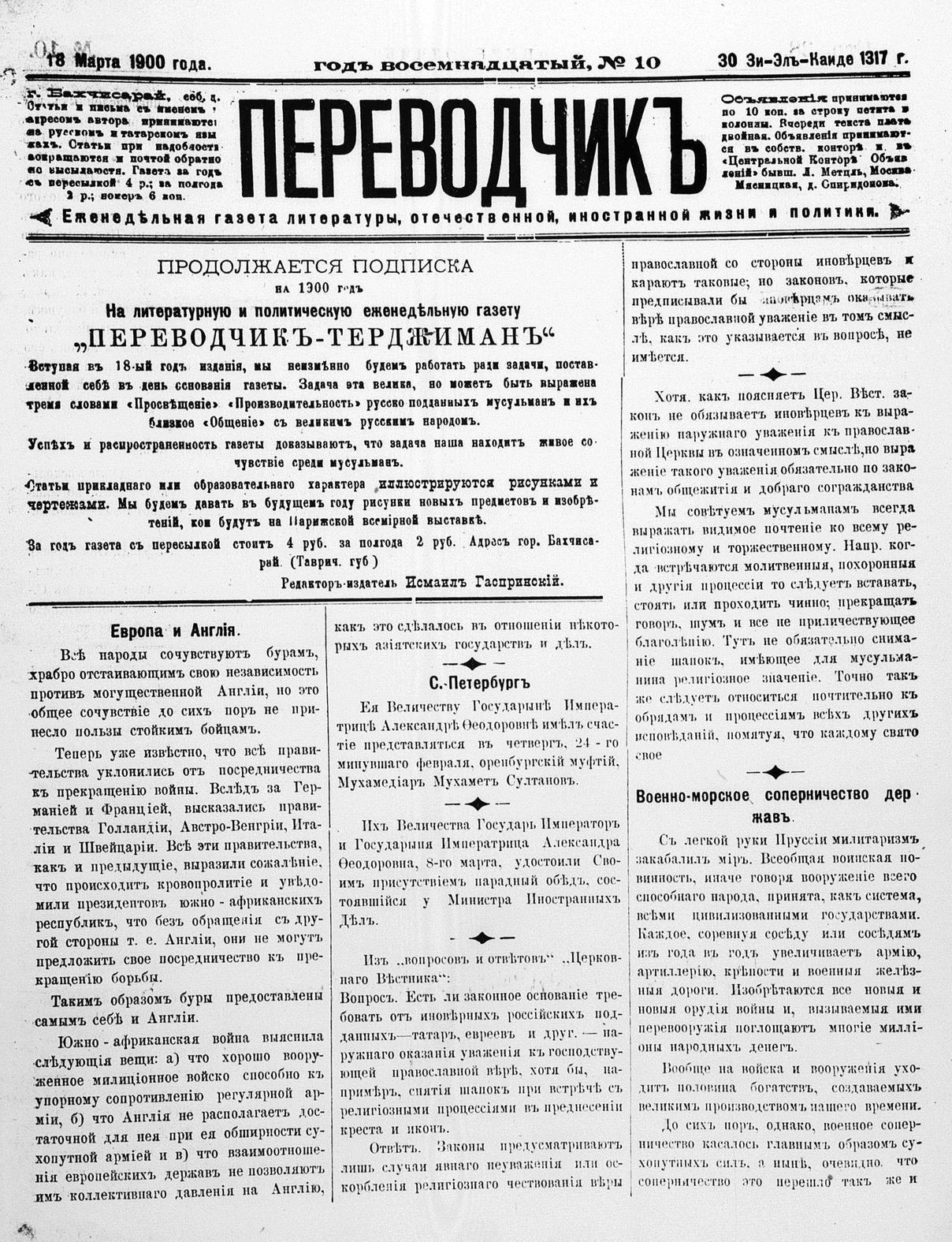 Turkish-Russian newspaper published in Crimea by İsmail Gaspıralı.