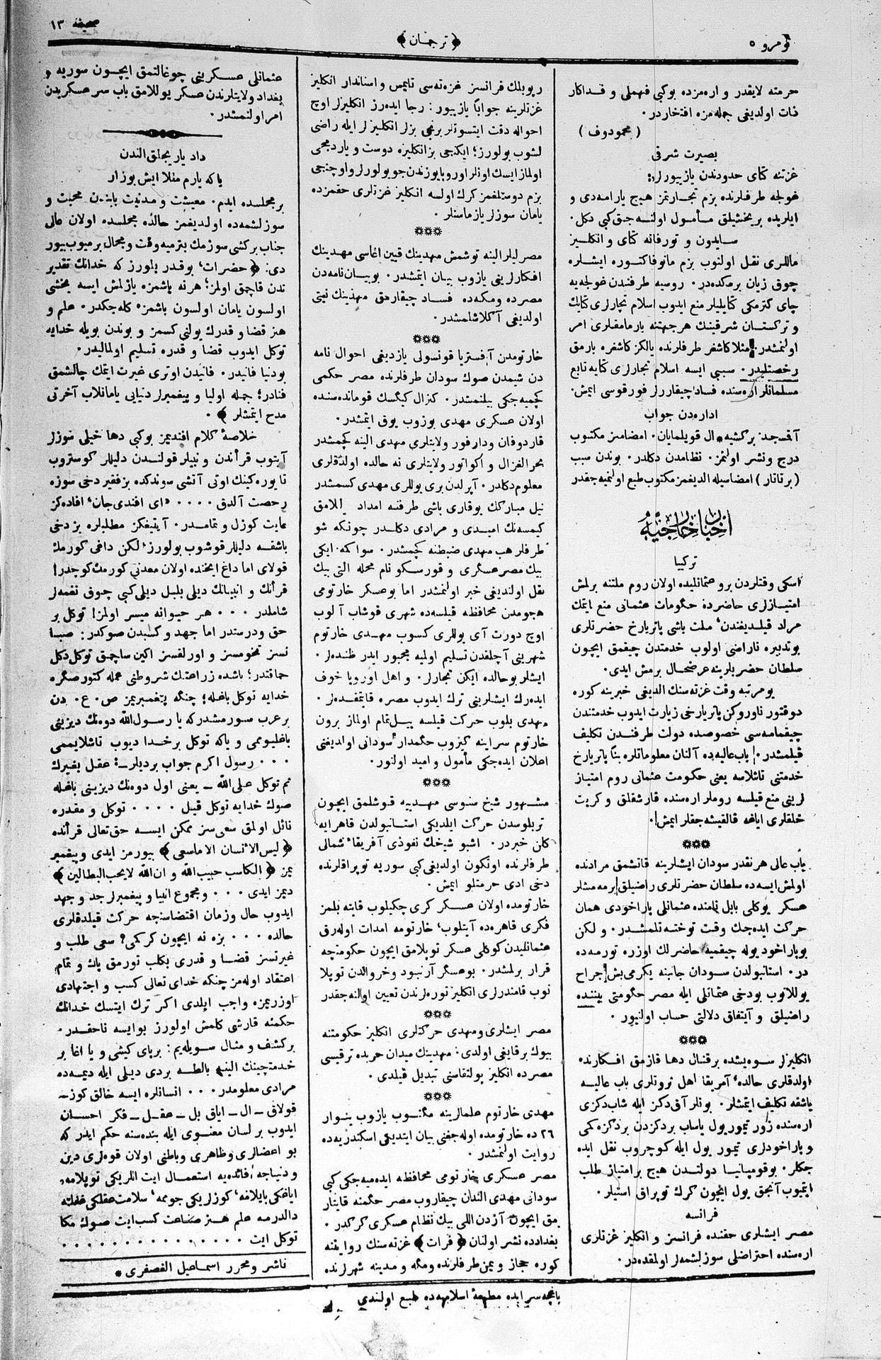 The name of the newspaper changed to Tercüman-ı Ahval-i Zaman in 1905. In 1909, it started to be published under its first name, Tercüman.