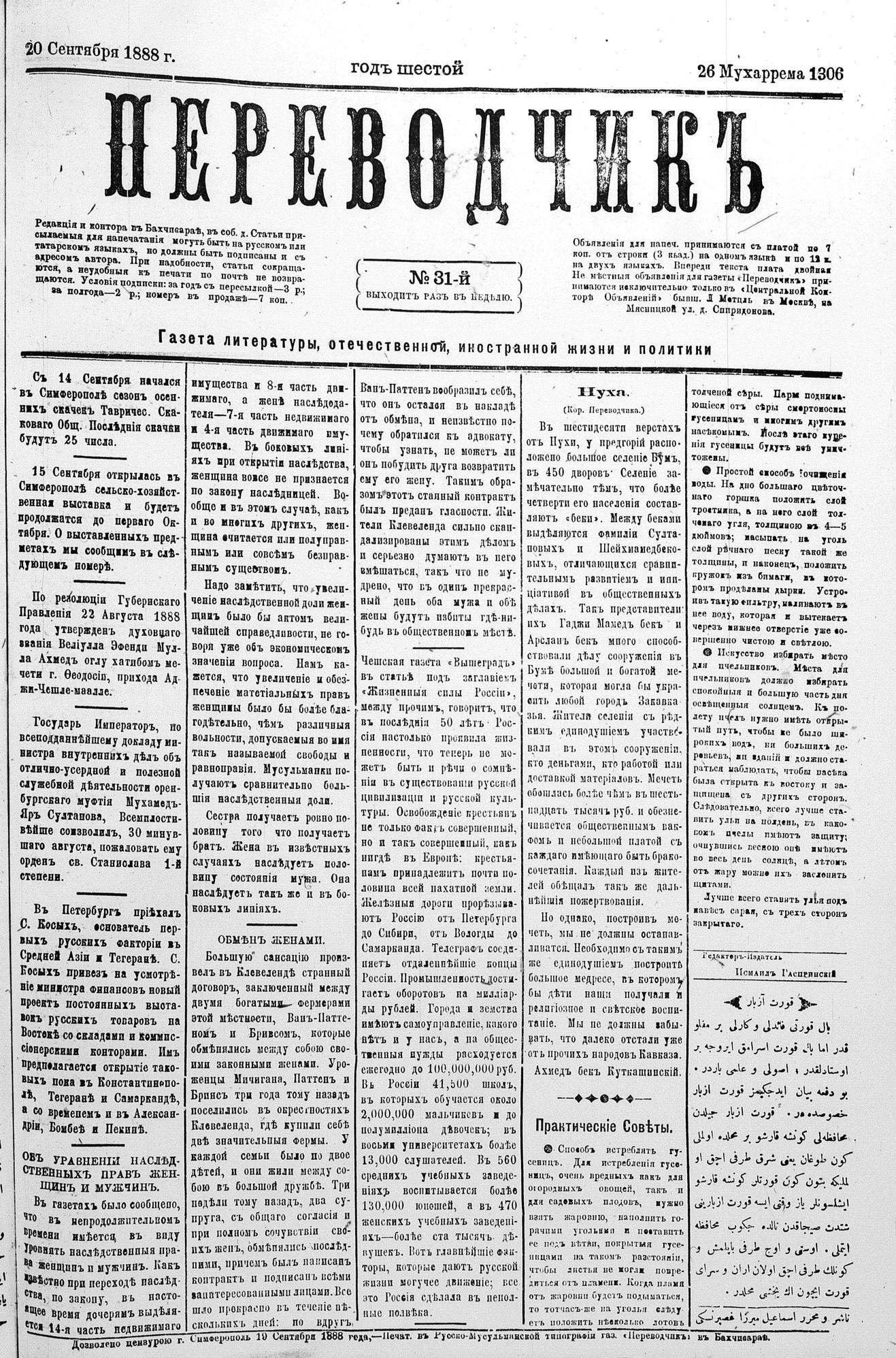 Turkish-Russian newspaper published in Crimea by İsmail Gaspıralı.