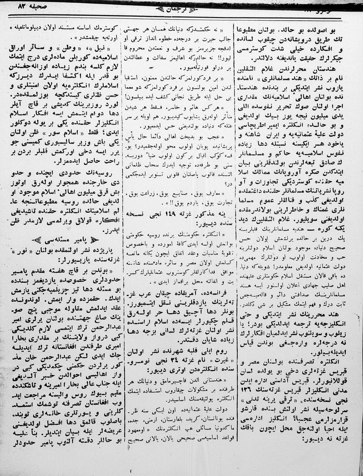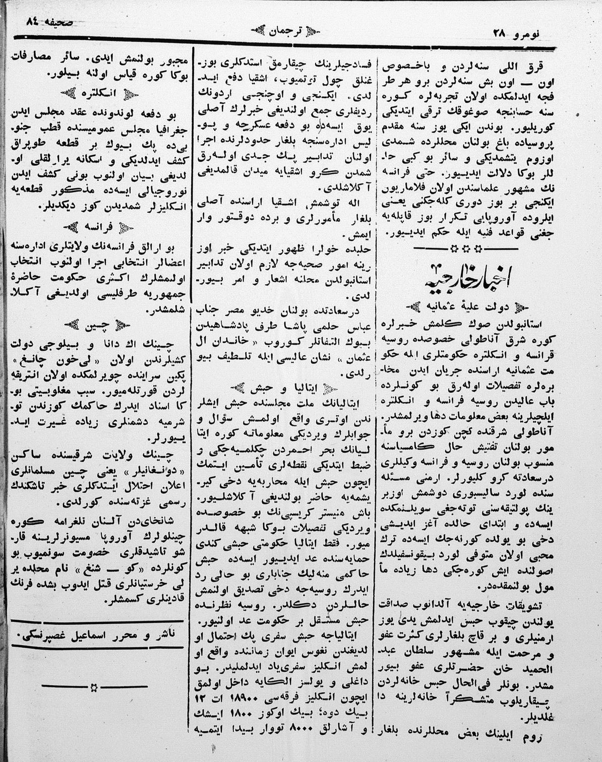 The name of the newspaper changed to Tercüman-ı Ahval-i Zaman in 1905. In 1909, it started to be published under its first name, Tercüman.