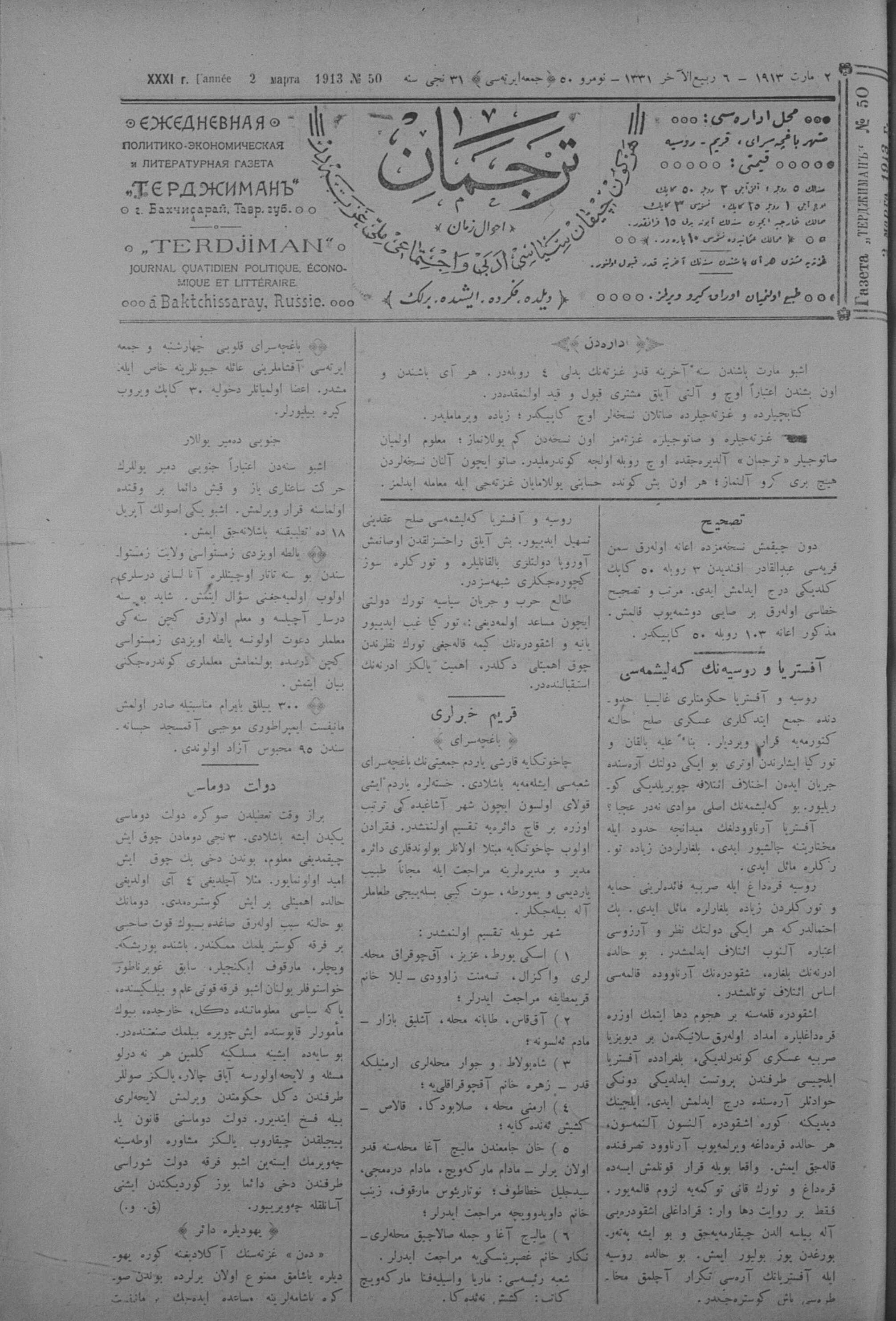 Tercüman, 02 March 1913 Year 31 No 50