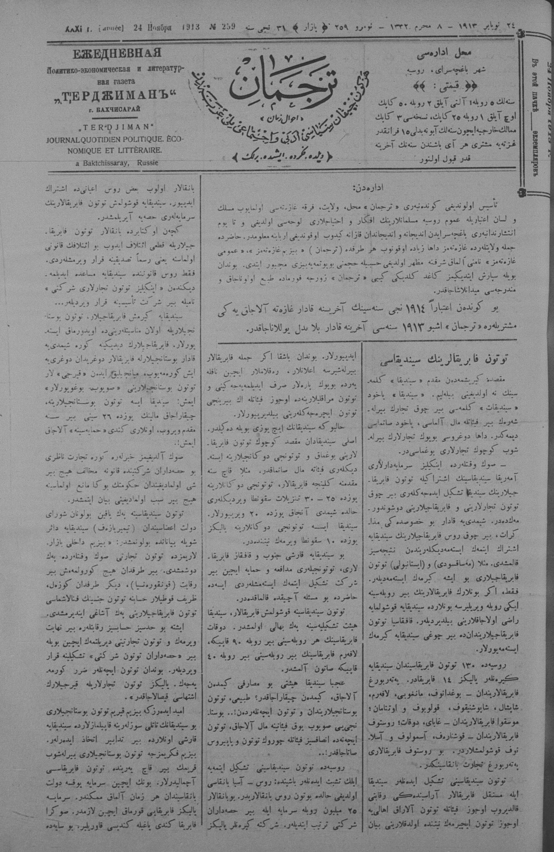 Tercüman, 24 November 1913 Year 31 No 259