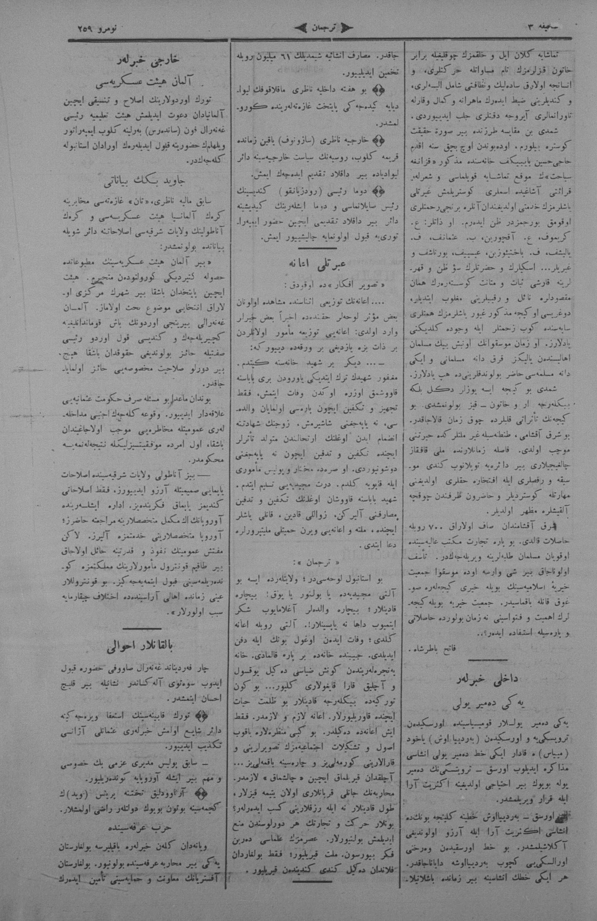 The name of the newspaper changed to Tercüman-ı Ahval-i Zaman in 1905. In 1909, it started to be published under its first name, Tercüman.