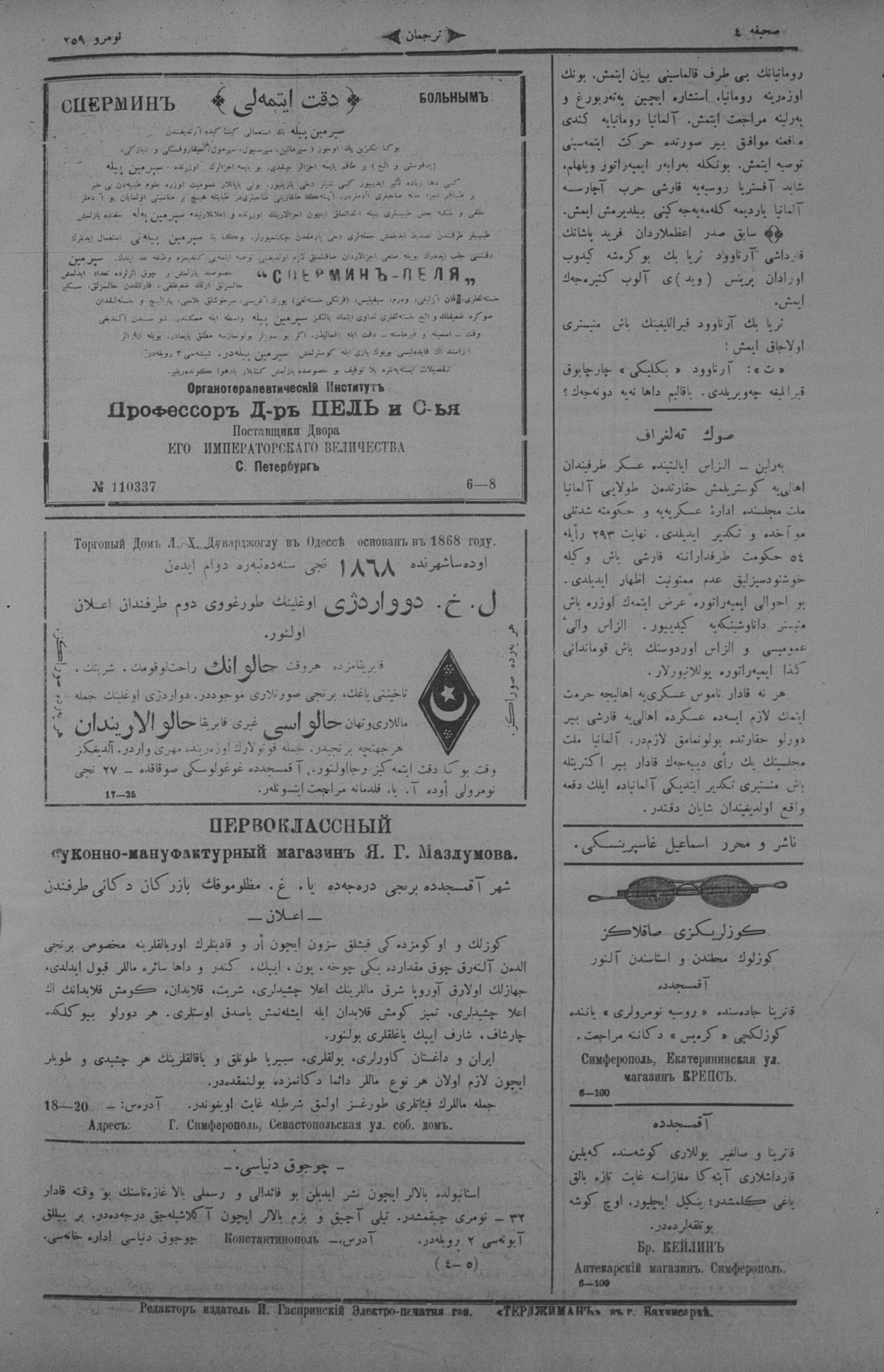 Turkish-Russian newspaper published in Crimea by İsmail Gaspıralı.