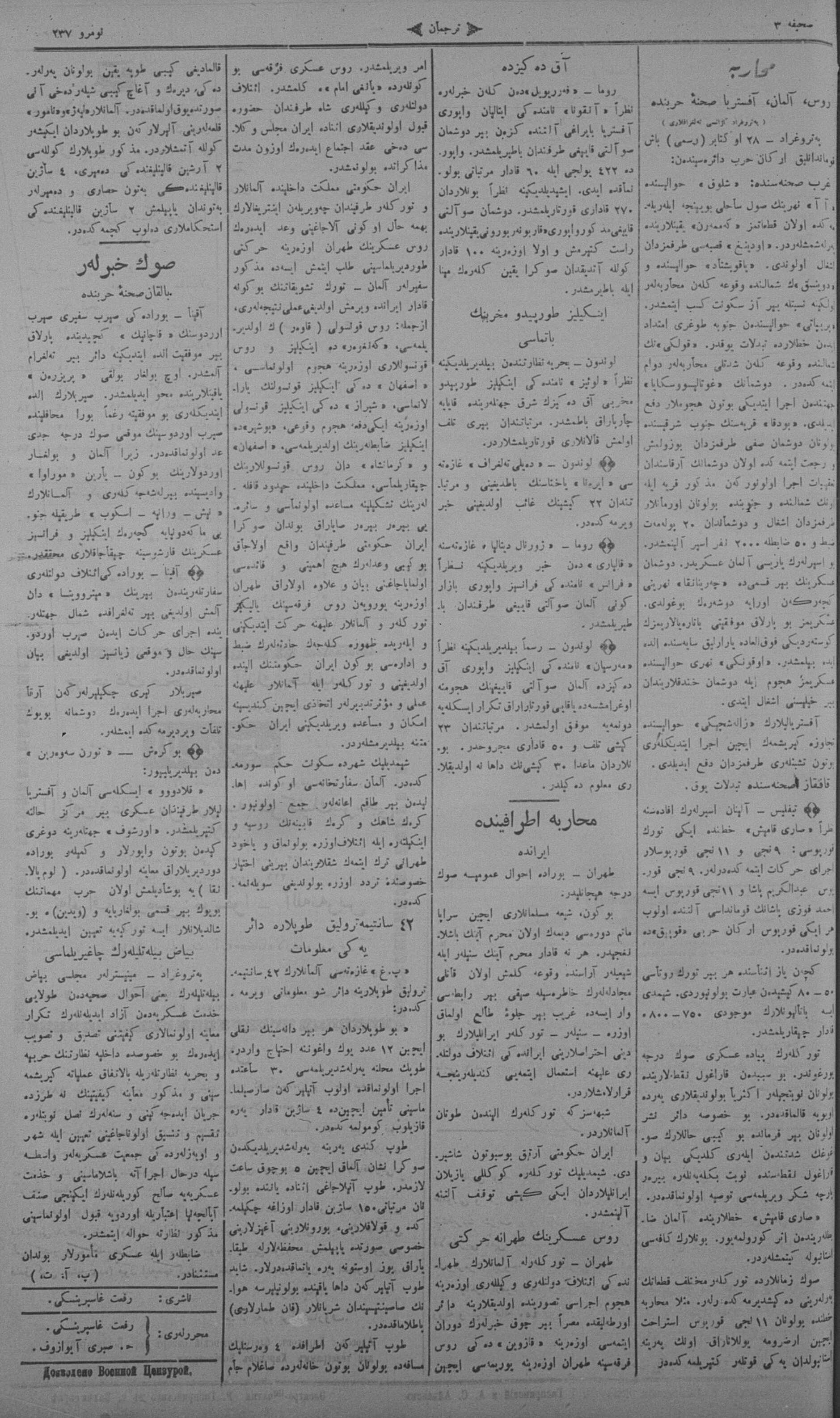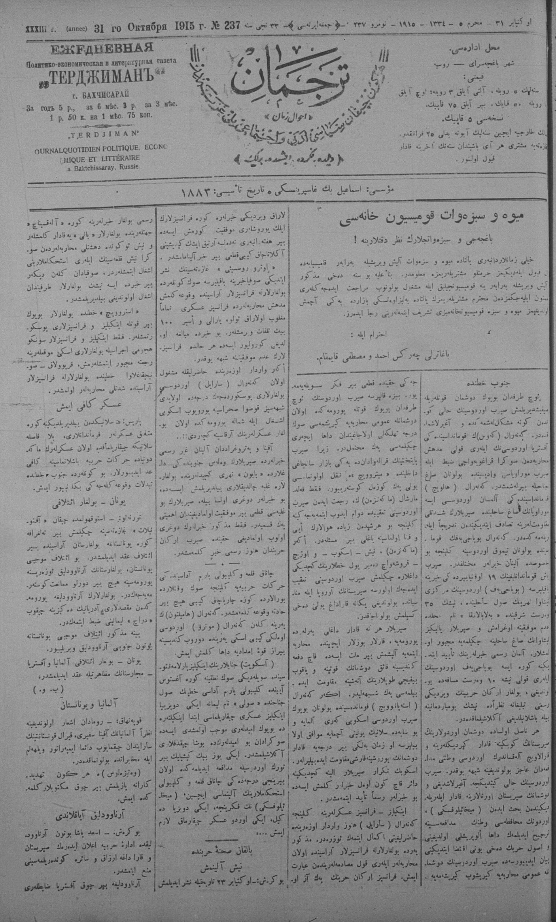 Tercüman, 31 October 1915 Year 33 No 237