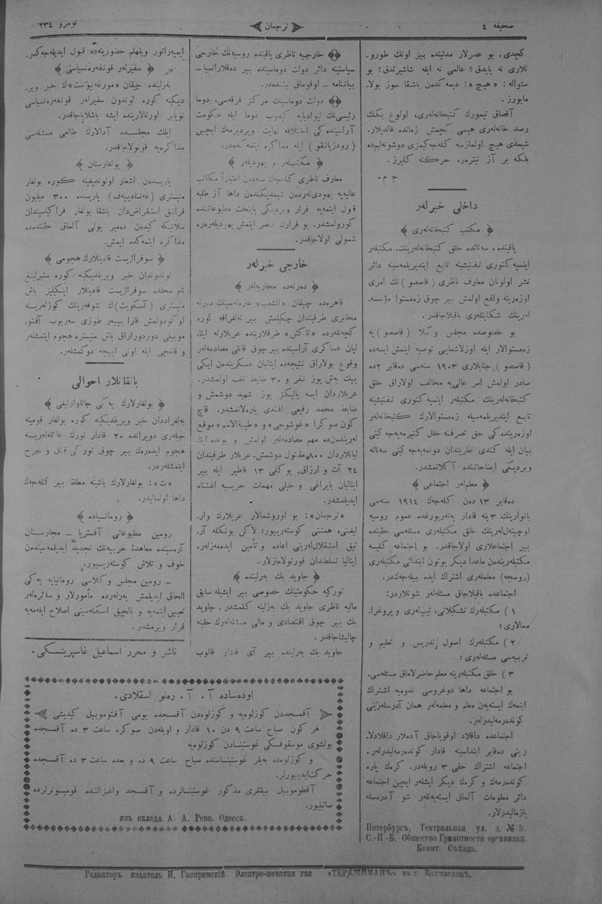 Turkish-Russian newspaper published in Crimea by İsmail Gaspıralı.
