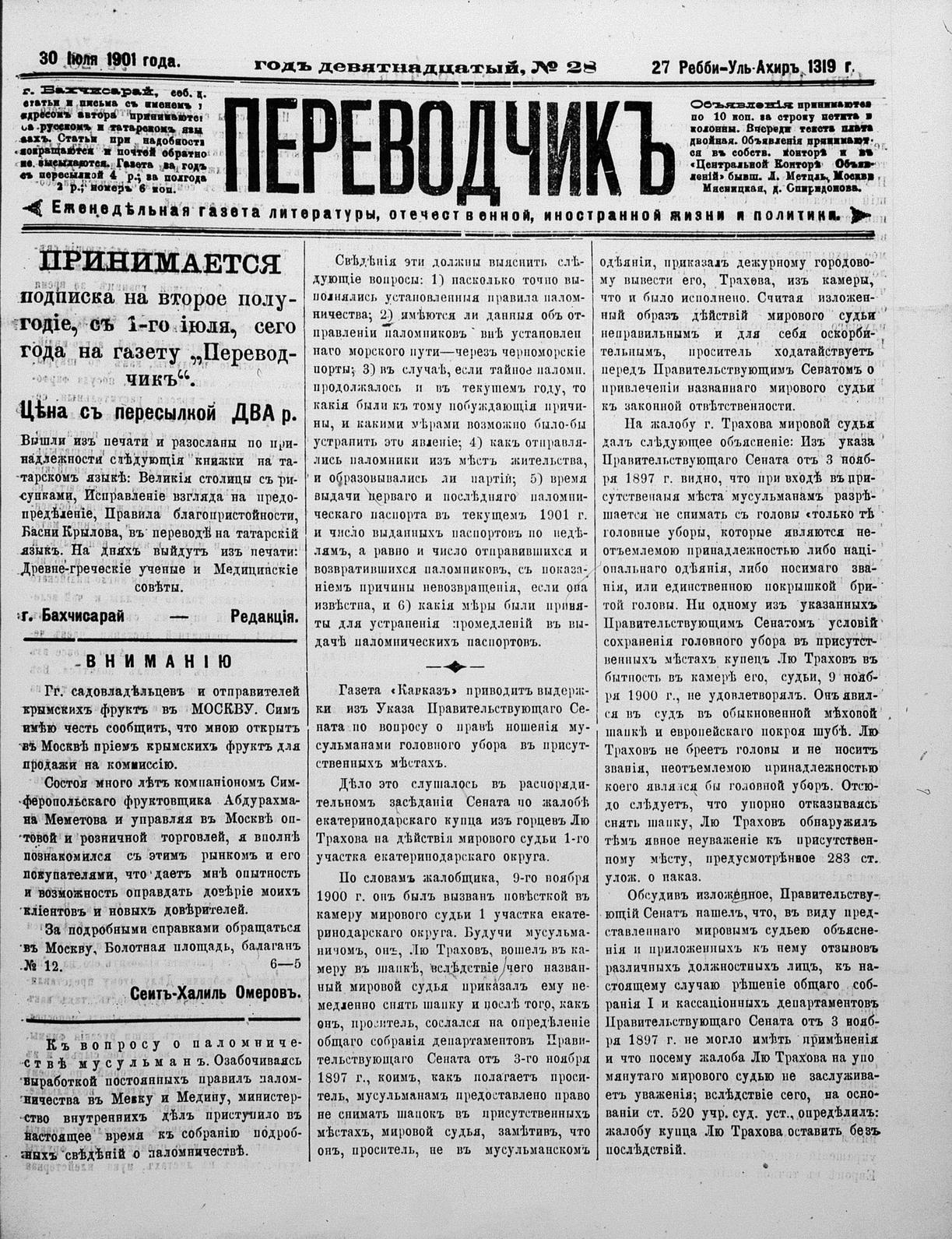 Turkish-Russian newspaper published in Crimea by İsmail Gaspıralı.