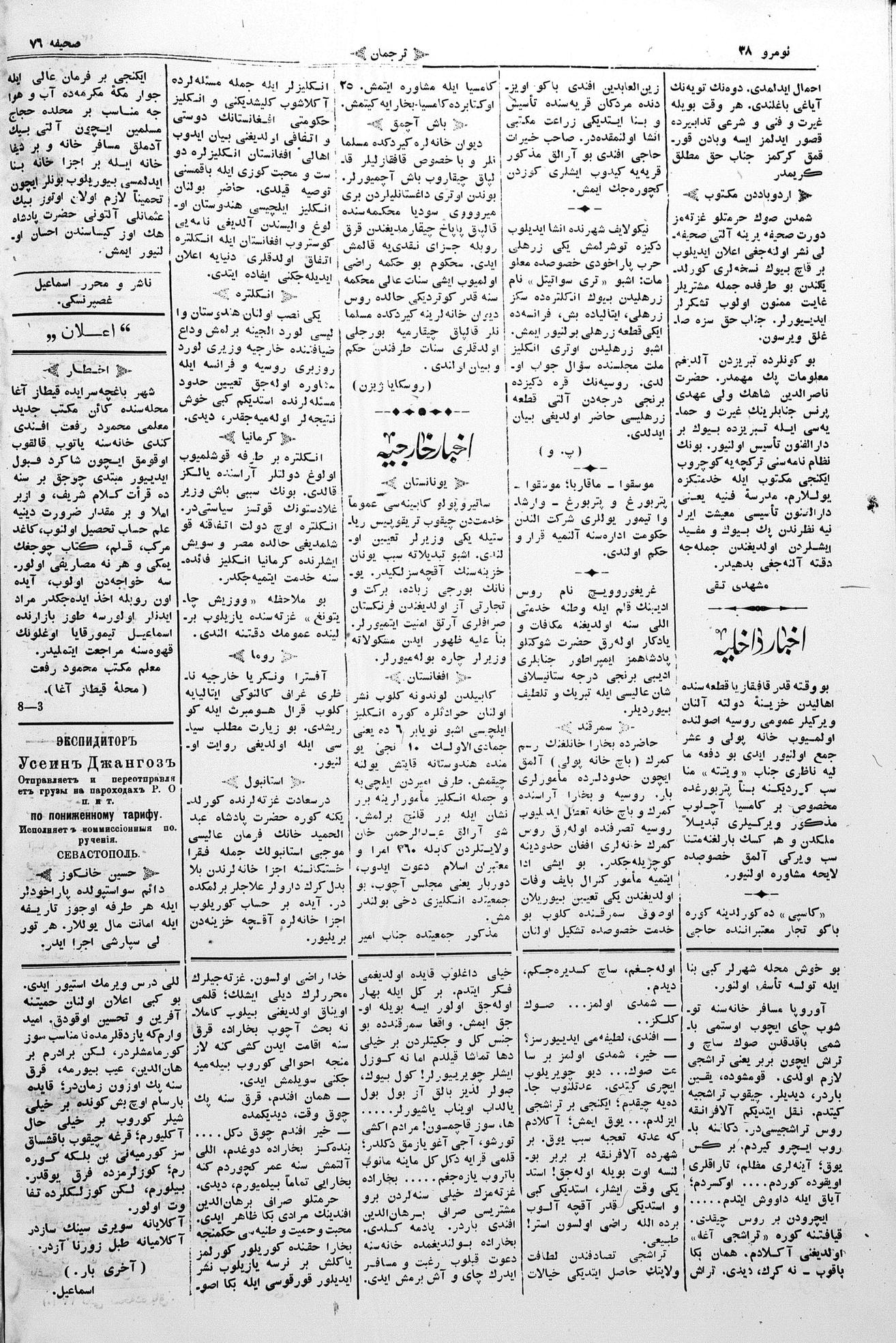 Turkish-Russian newspaper published in Crimea by İsmail Gaspıralı.