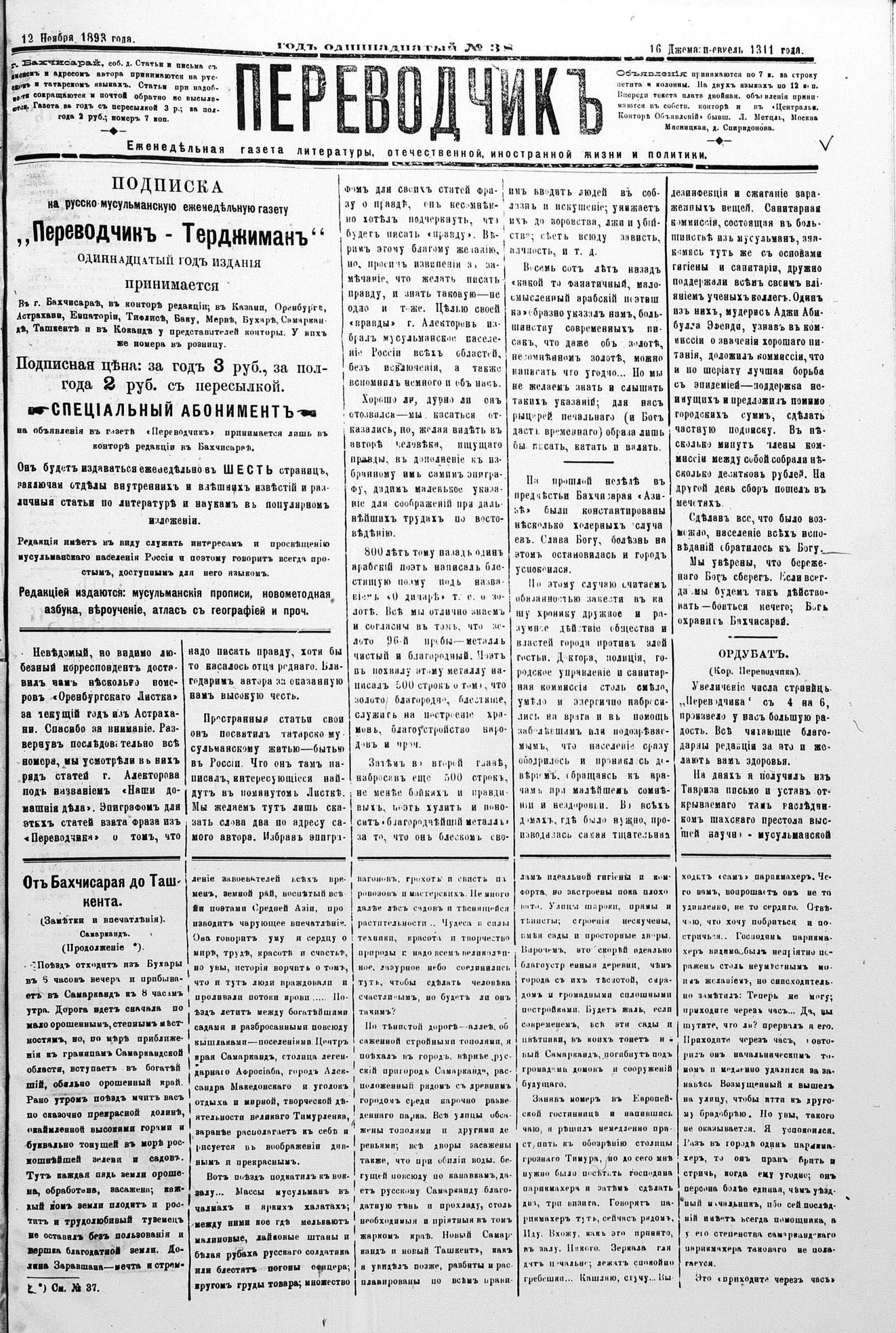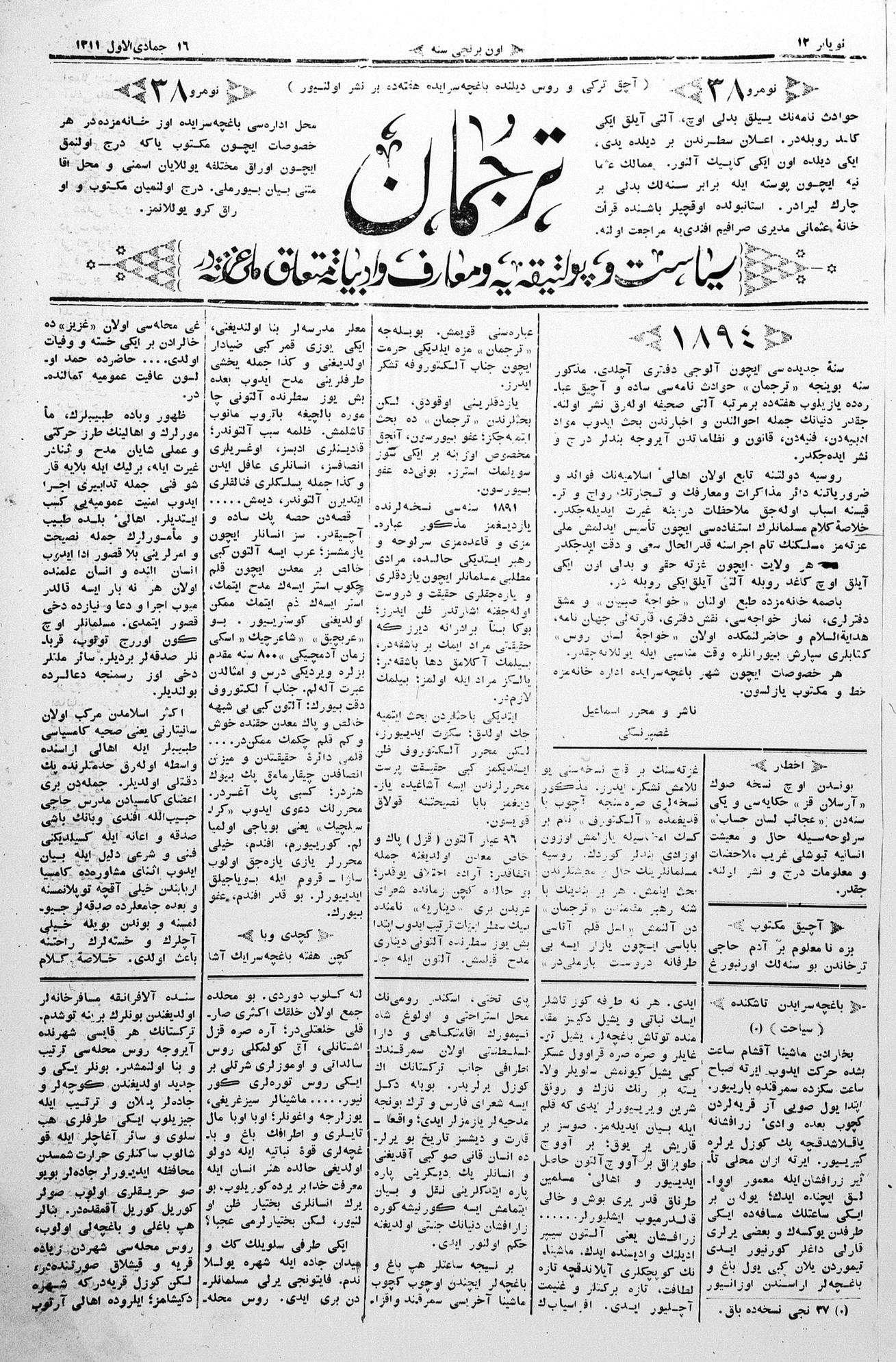 Tercüman, 12 November 1893 Year 11 No 38