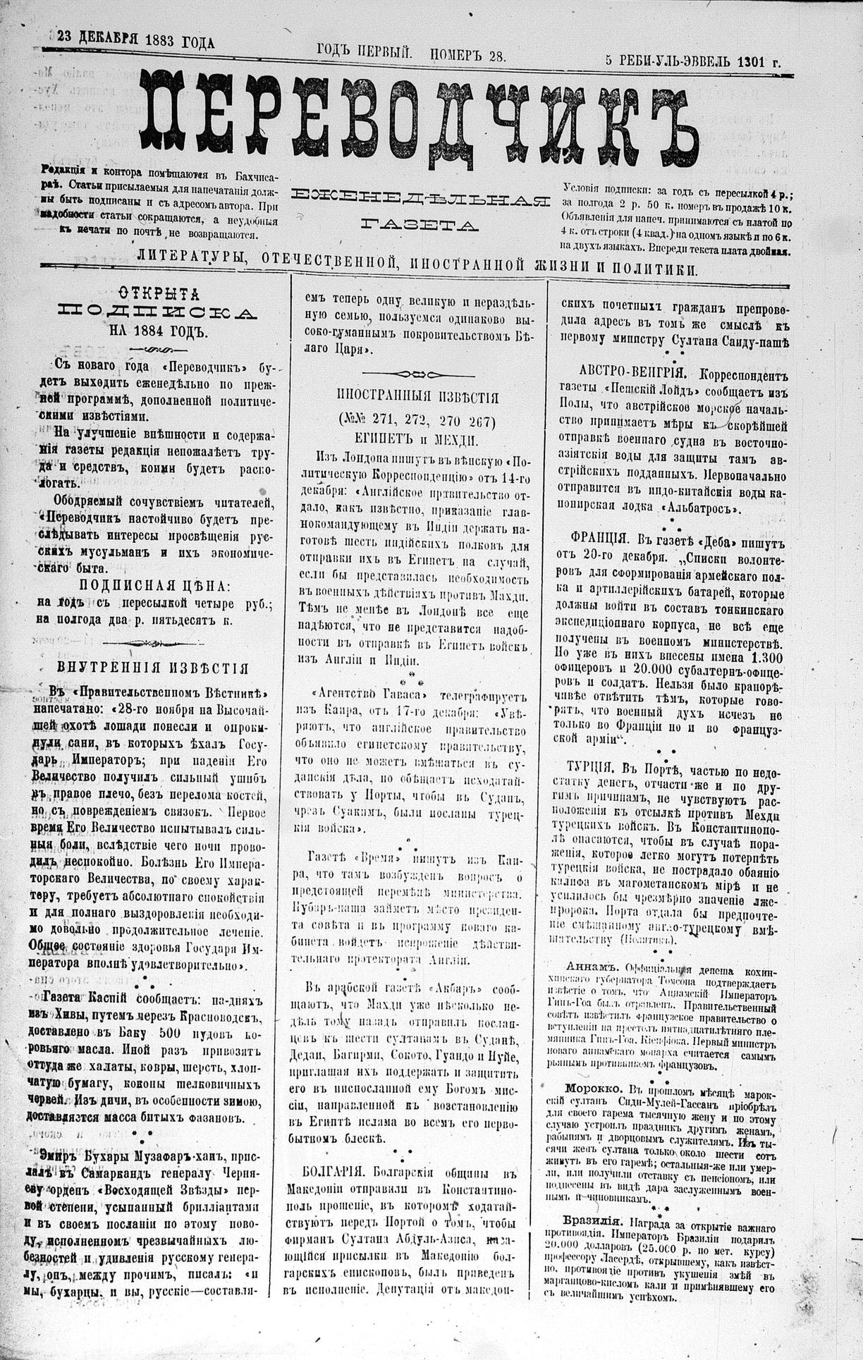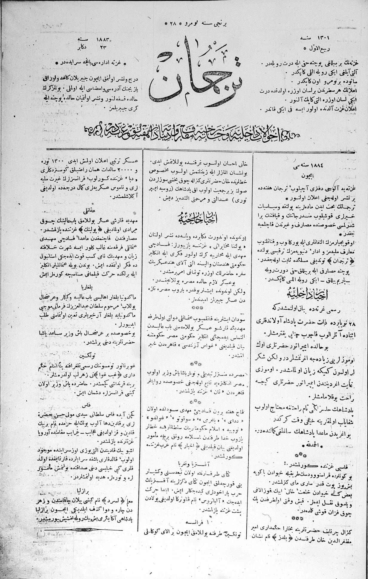Tercüman, 23 December 1883 Year 1 No 28