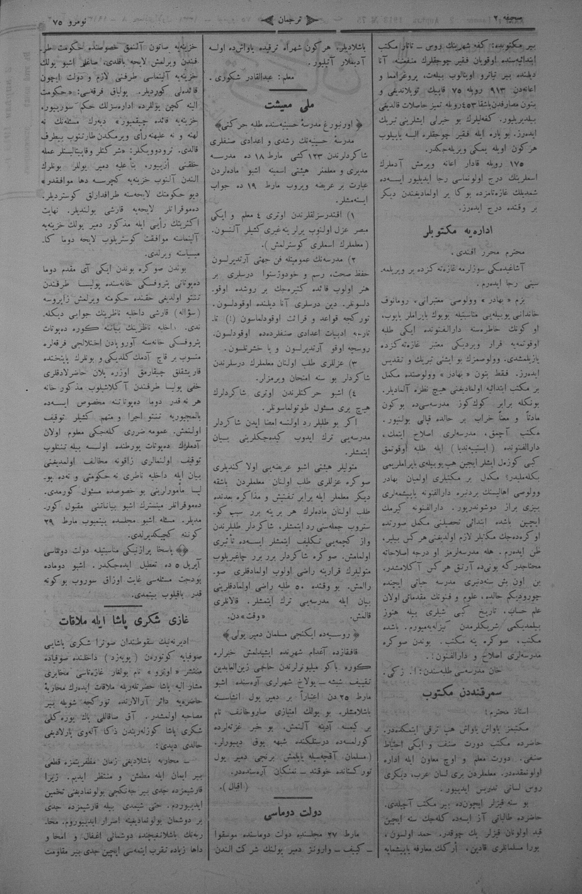 The name of the newspaper changed to Tercüman-ı Ahval-i Zaman in 1905. In 1909, it started to be published under its first name, Tercüman.