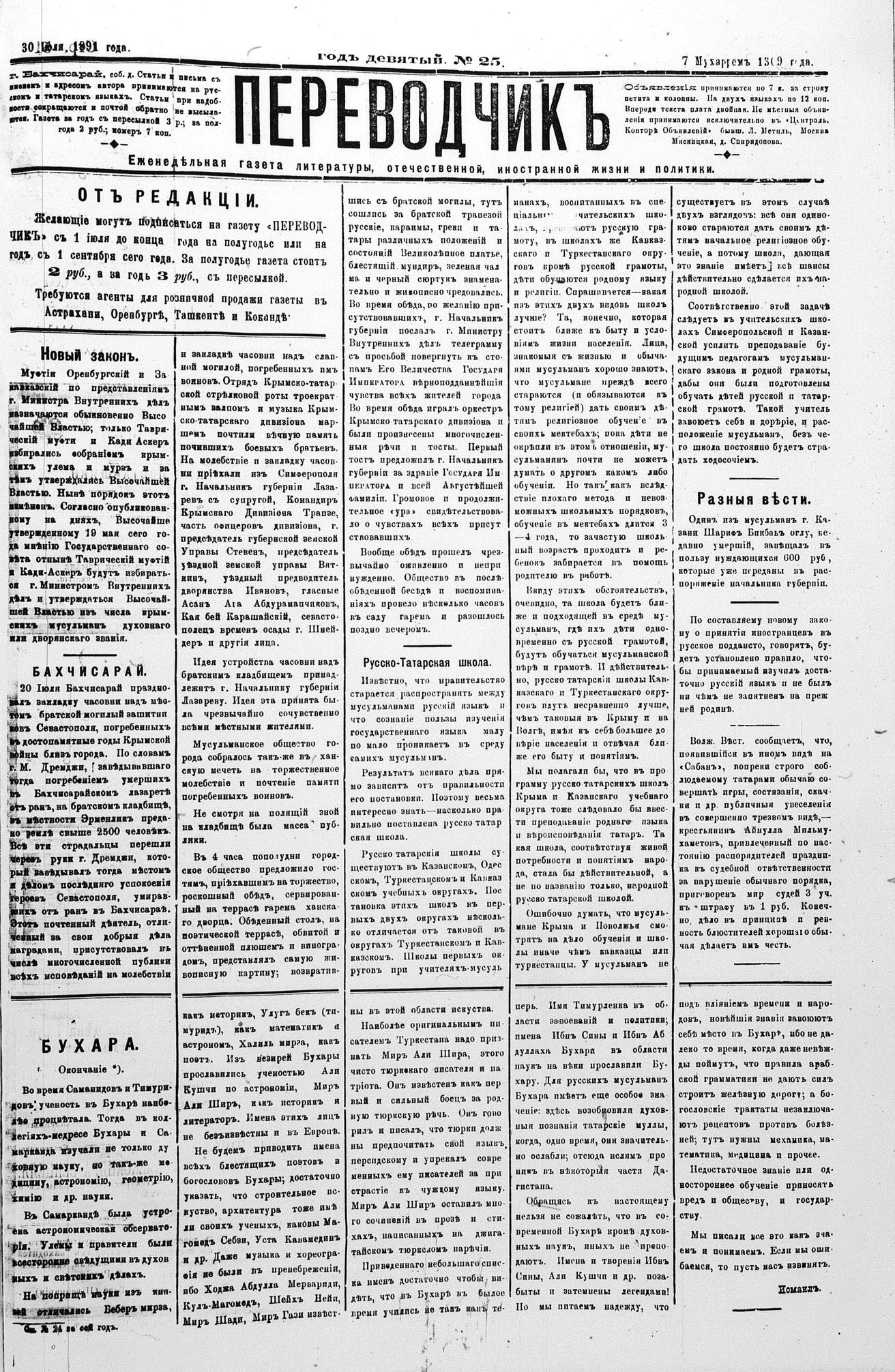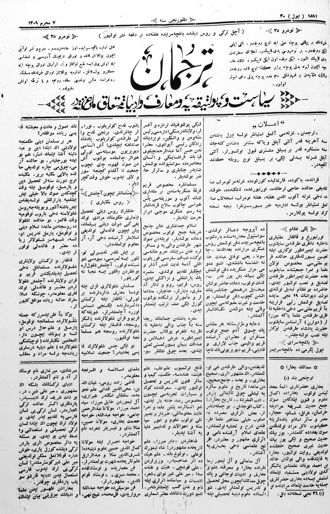 Tercüman, 30 July 1891 Year 9 No 25