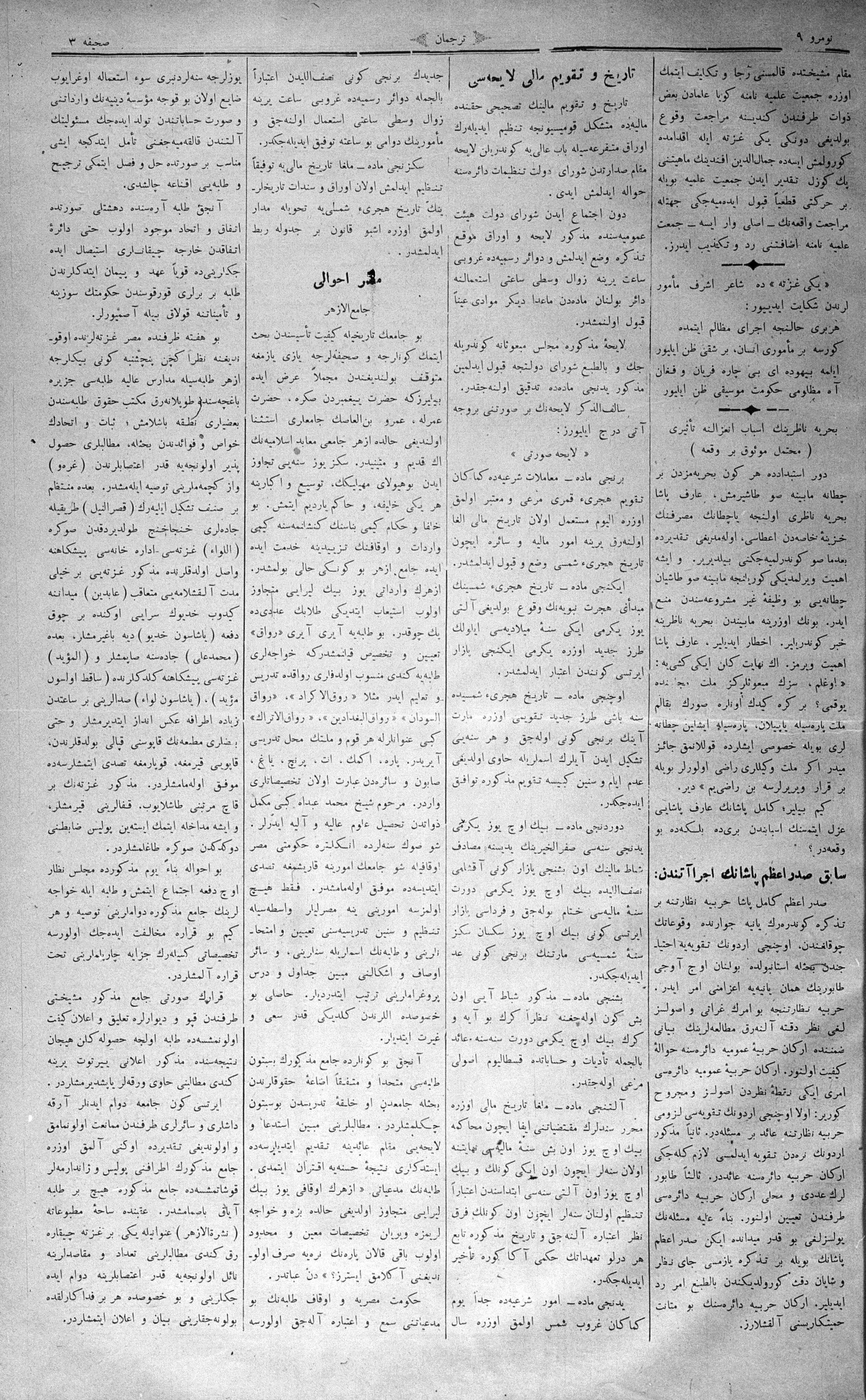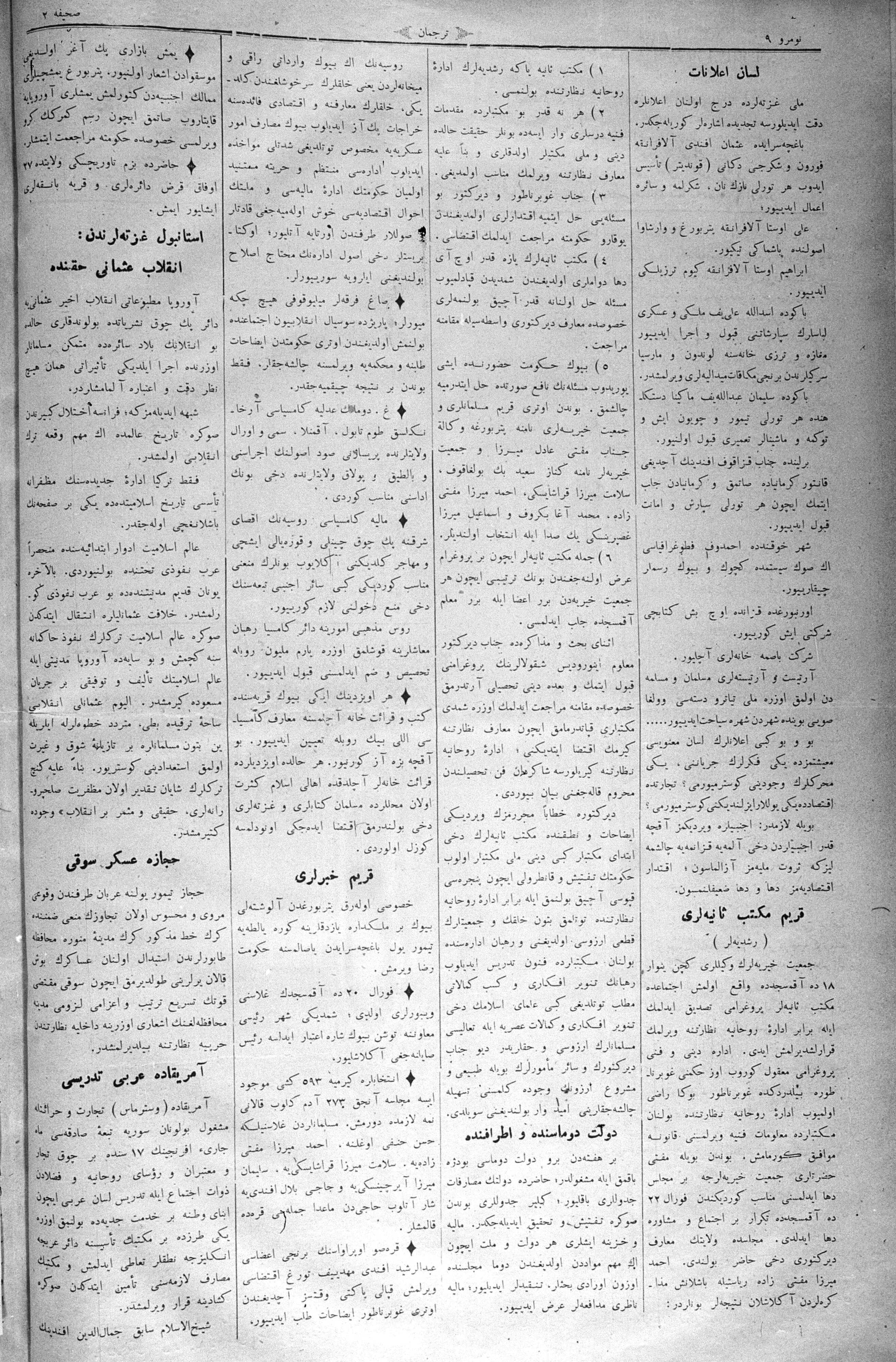 The name of the newspaper changed to Tercüman-ı Ahval-i Zaman in 1905. In 1909, it started to be published under its first name, Tercüman.