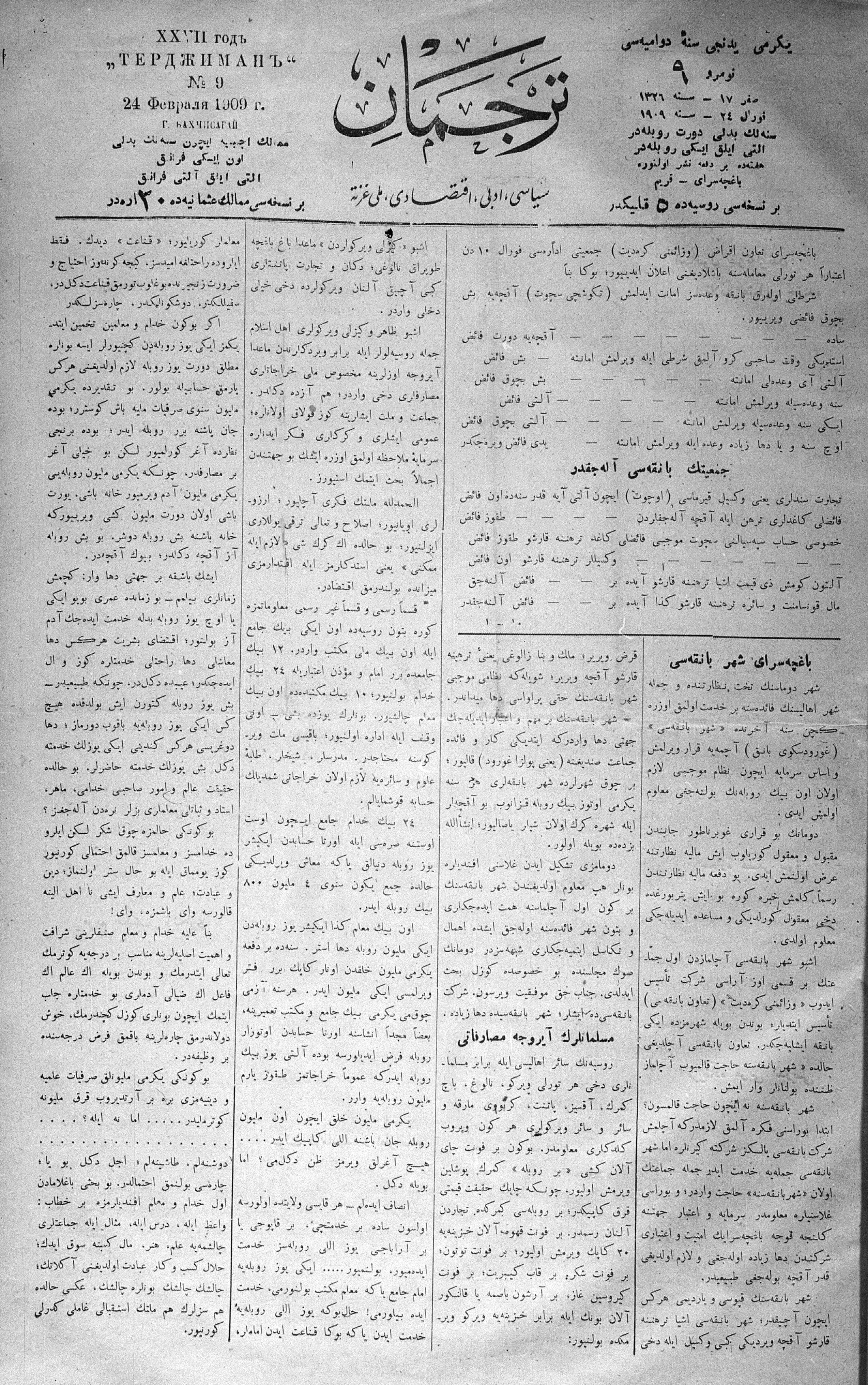 Tercüman, 24 February 1909 Year 27 No 9