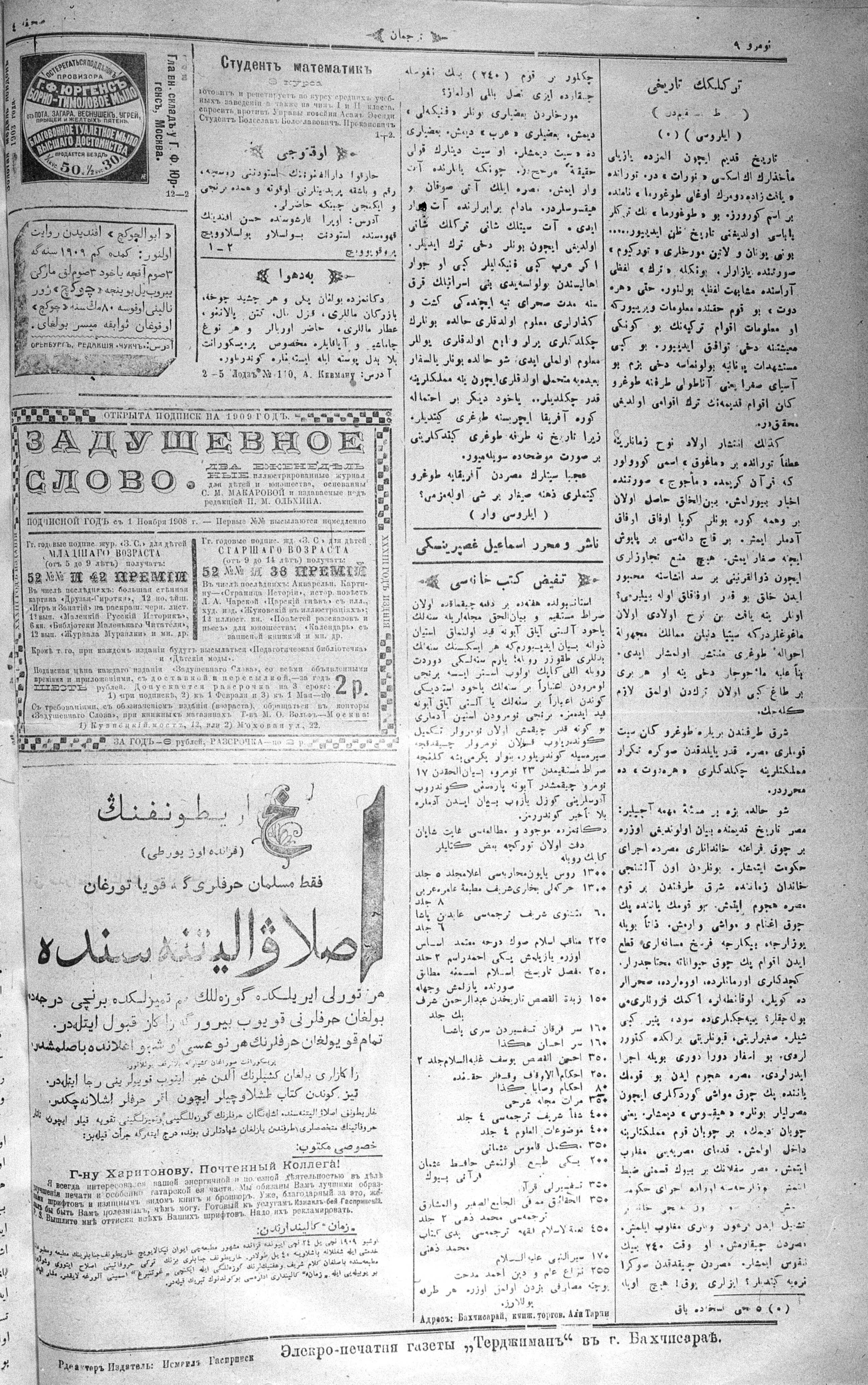 Turkish-Russian newspaper published in Crimea by İsmail Gaspıralı.