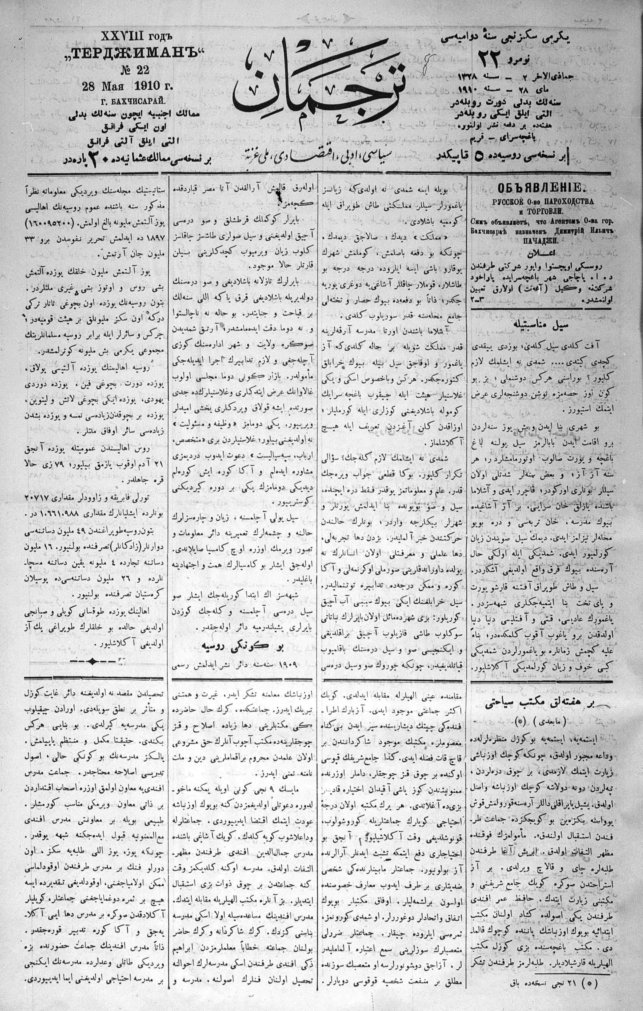 Tercüman, 28 May 1910 Year 28 No 22